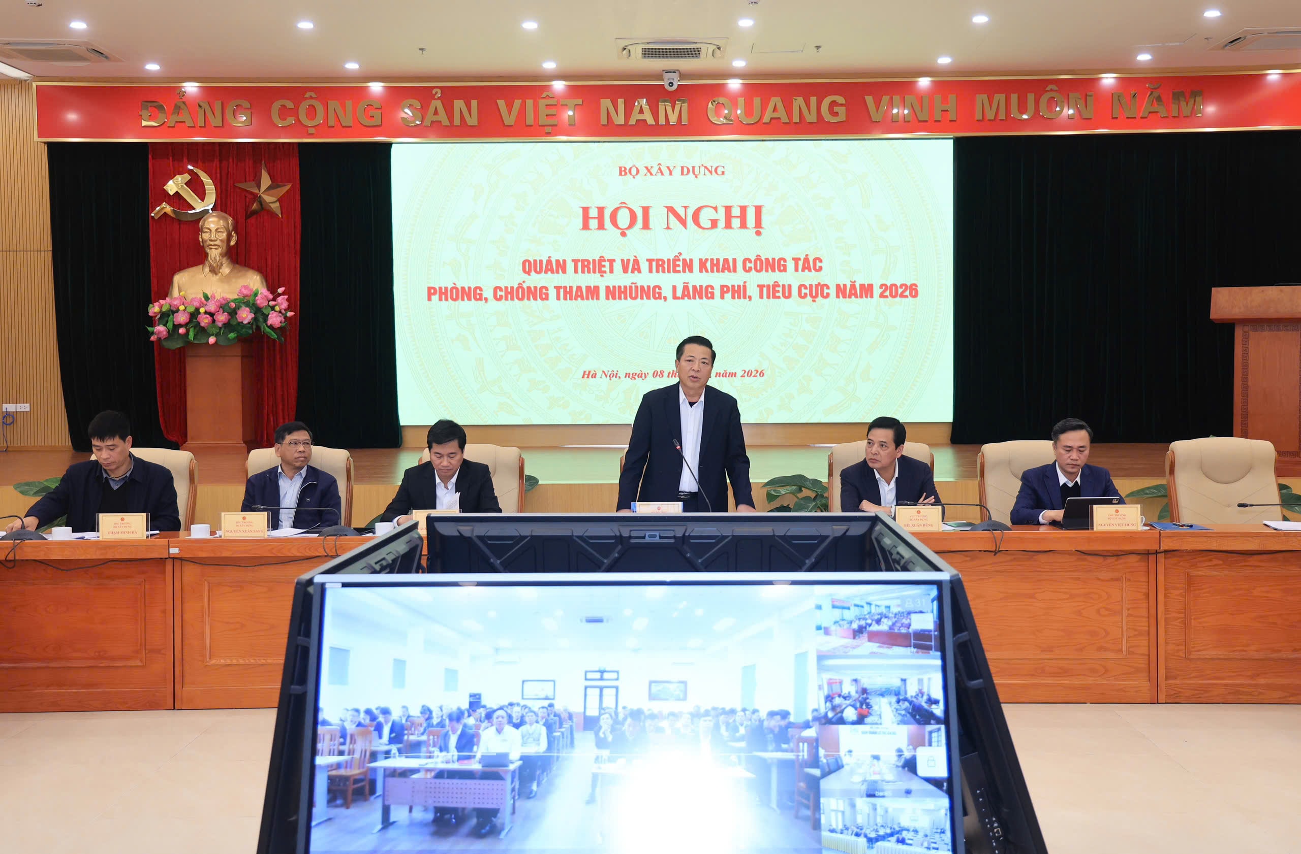 Trước đó, báo cáo công tác phòng, chống tham nhũng, tiêu cực năm 2025 của Bộ Xây dựng, ông Nguyễn Trí Đức, Chánh văn phòng Bộ cho biết: Thời gian qua, Bộ Xây dựng đã lãnh đạo, chỉ đạo quyết liệt, triển khai đồng bộ, hiệu quả công tác phòng chống tham nhũng lãng phí tiêu cực trên các lĩnh vực trọng tâm; bảo đảm chất lượng, tiến độ xây dựng thể chế và văn bản pháp luật; tăng cường quản lý hạ tầng xây dựng, giao thông, nhà ở, thị trường bất động sản, quy hoạch, phát triển đô thị.