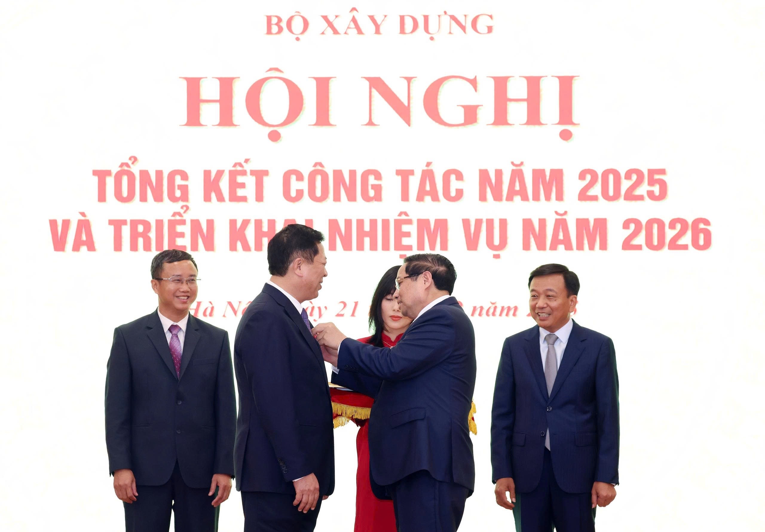 Tại hội nghị, Bộ trưởng Xây dựng Trần Hồng Minh cũng được Chủ tịch nước trao tặng Huân chương Lao động hạng Nhất vì đã có thành tích đặc biệt xuất sắc, đột xuất trong triển khai đầu tư các dự án công trình trọng điểm, dự án quan trọng quốc gia và cùng các địa phương hoàn thành mục tiêu 3.000km đường bộ cao tốc vào cuối năm 2025.
