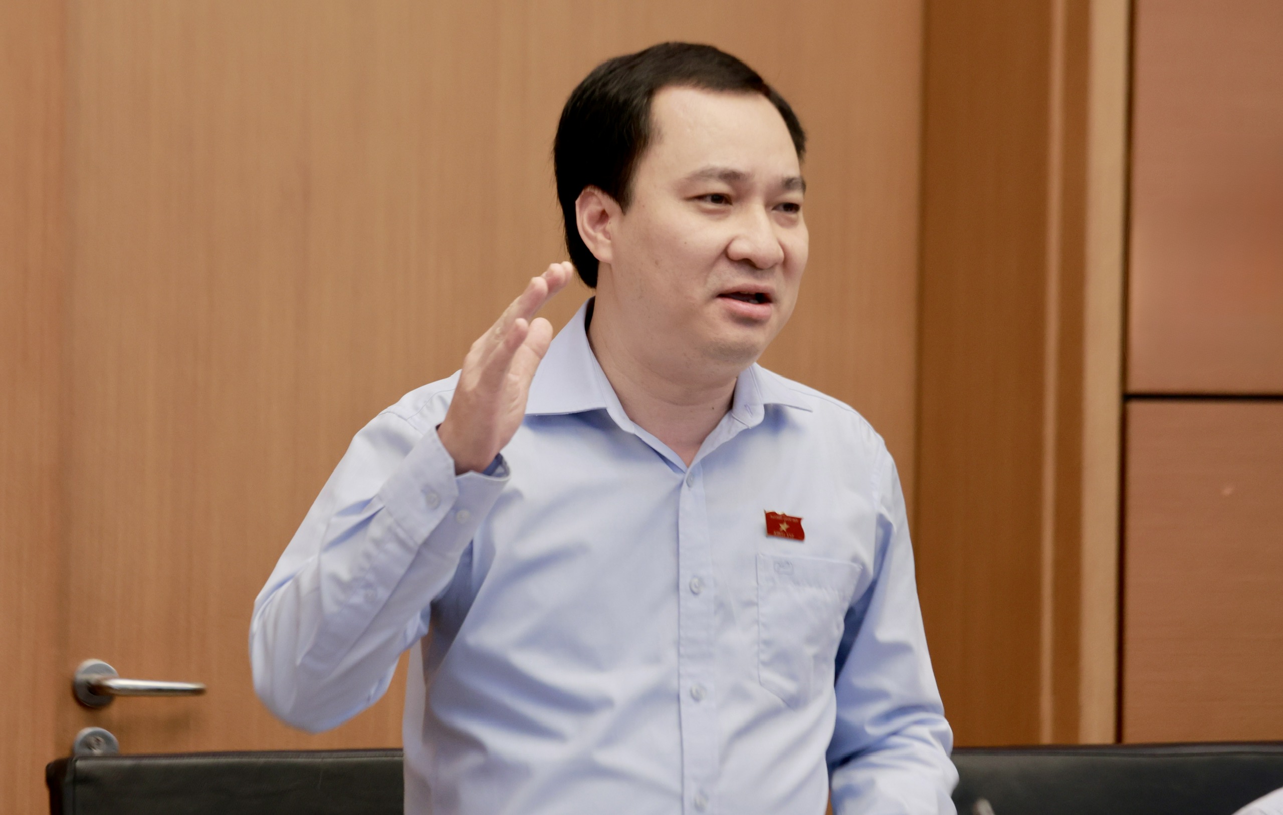 Đại biểu Vũ Văn Tiến (đoàn Hải Phòng) phát biểu tại tổ. Ảnh: Trang Trần.