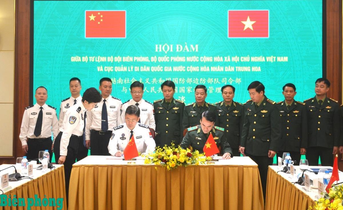 Kết thúc hội đàm, Trung tướng Vũ Trung Kiên và đồng chí Lưu Hải Đào đã ký kết Biên bản hội đàm giữa Bộ Tư lệnh BĐBP Việt Nam và Cục Quản lý Di dân Quốc gia Trung Quốc.