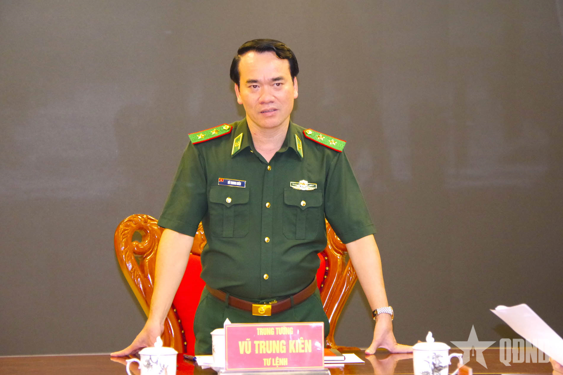 Trung tướng Vũ Trung Kiên phát biểu tại buổi làm việc.
