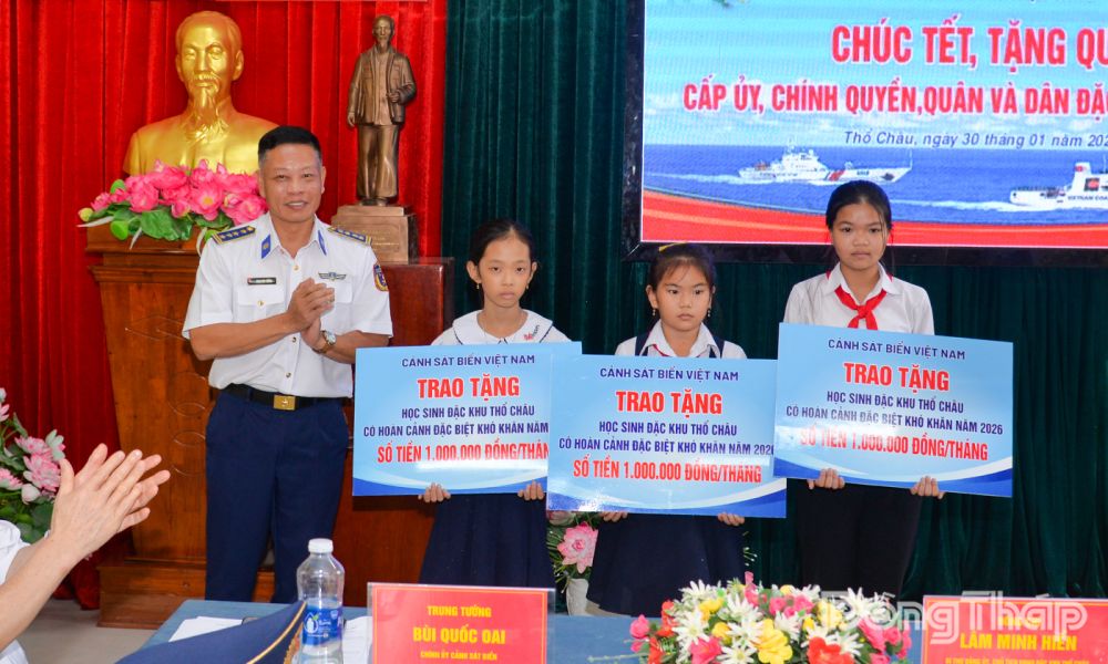Thay mặt chính quyền địa phương, đồng chí Lâm Minh Hiển, Bí thư Đảng ủy, Chủ tịch UBND đặc khu Thổ Châu bày tỏ sự cảm ơn sâu sắc trước sự quan tâm của đoàn công tác, đồng thời khẳng định: “Sự hiện diện thường xuyên của lực lượng Cảnh sát biển là chỗ dựa vững chắc để chính quyền và Nhân dân Thổ Châu yên tâm sinh sống, làm ăn, bảo vệ chủ quyền biển, đảo”.