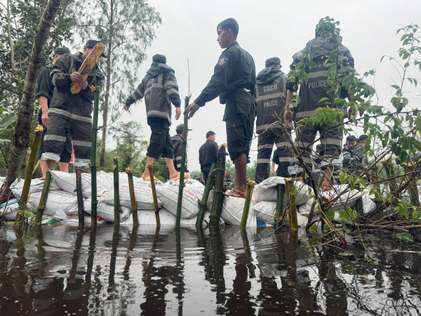 Lực lượng CSCĐ gia cố một số tuyến đê xung yếu.