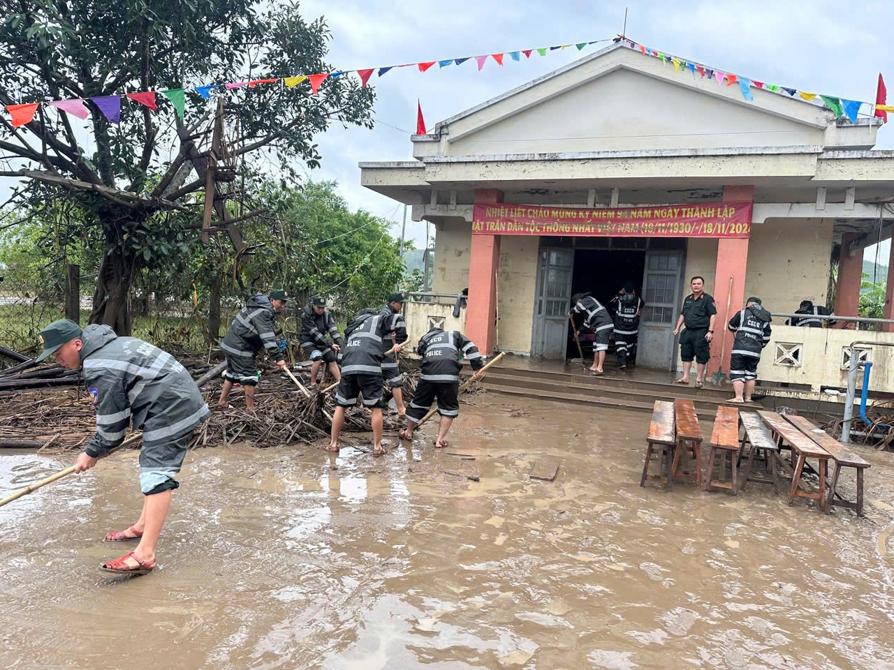 Ngay từ những ngày 20, 21, 22, hàng nghìn cán bộ, chiến sĩ của các Trung đoàn Cảnh sát cơ động Tây Nguyên, Trung đoàn Cảnh sát cơ động Nam Trung bộ, Trung tâm huấn luyện, bồi dưỡng nghiệp vụ và giáo dục nghề nghiệp số 3 cùng hàng trăm phương tiện chuyên dụng như xuồng cao tốc, xe đặc chủng, thiết bị cứu hộ – cứu nạn đã được điều động tới các điểm nóng.