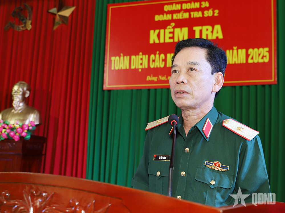 Thiếu tướng Lê Văn Cương, Phó tư lệnh Quân đoàn 34 phát biểu chỉ đạo kiểm tra.