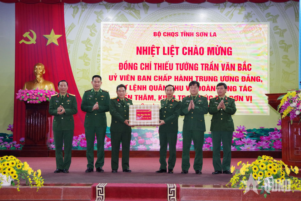 Thiếu tướng Trần Văn Bắc và đoàn công tác thăm, chúc Tết cán bộ, chiến sĩ Bộ CHQS tỉnh Sơn La.