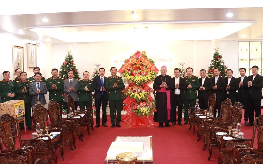 Đoàn công tác Bộ Tư lệnh Quân khu 4 tặng hoa chúc mừng Giáng sinh Tòa Tổng Giám mục Tổng Giáo phận Huế