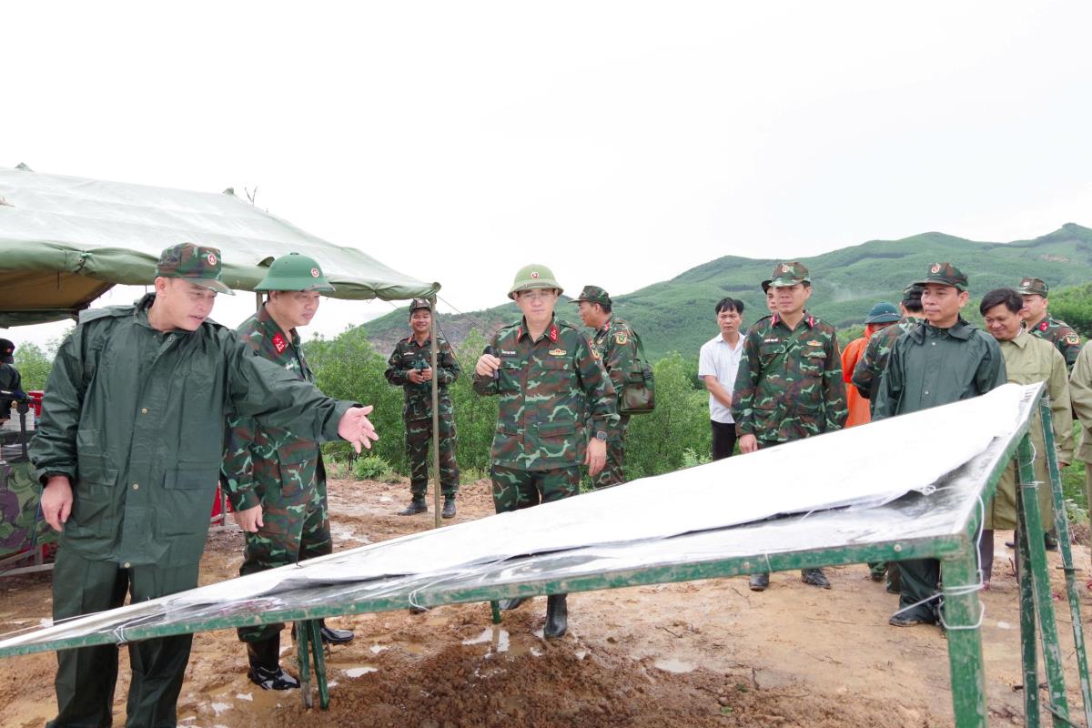 Lãnh đạo Quân khu 5 xem bản đồ khu vực quy hoạch xây dựng thao trường huấn luyện, sở chỉ huy diễn tập.