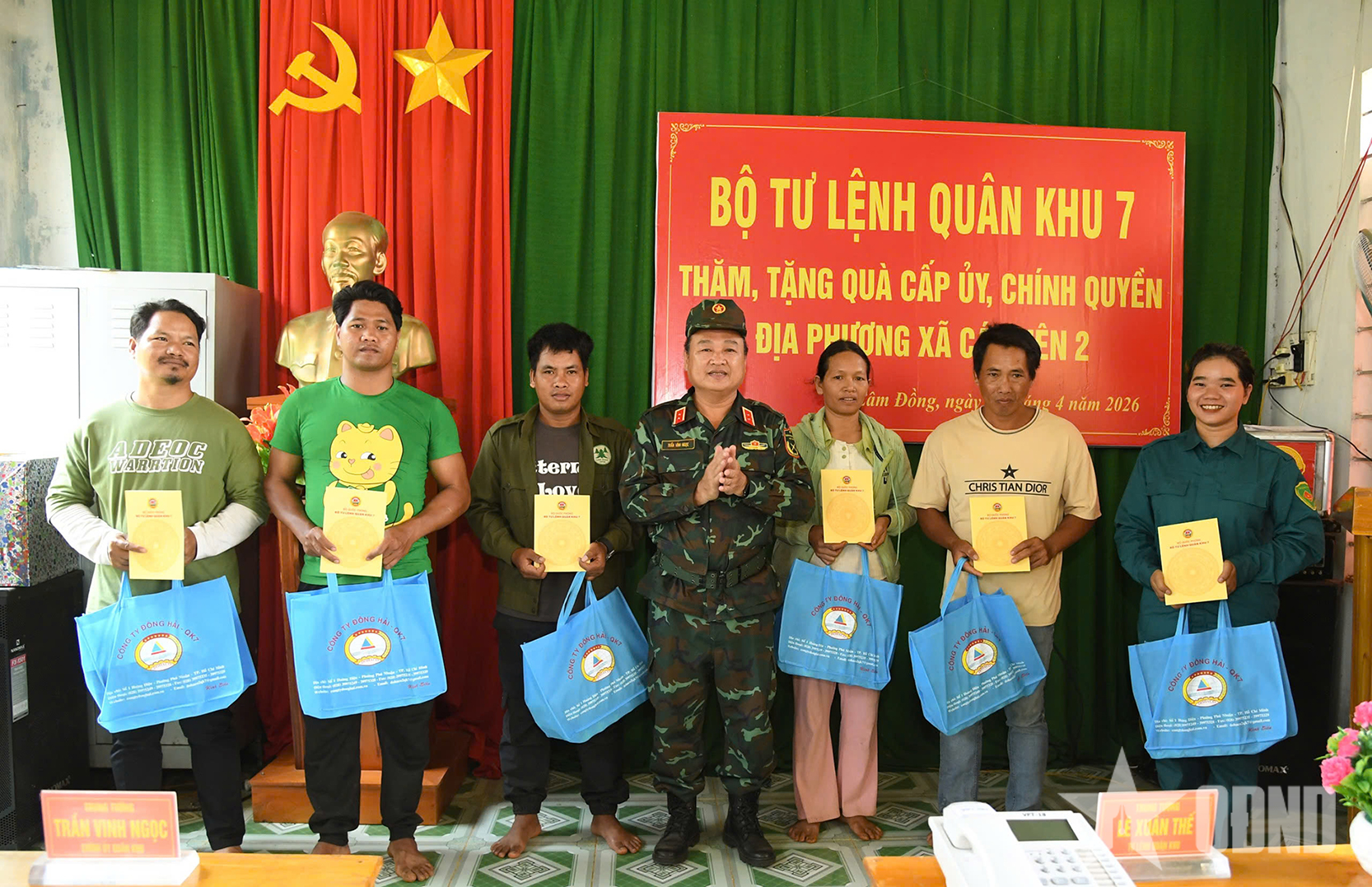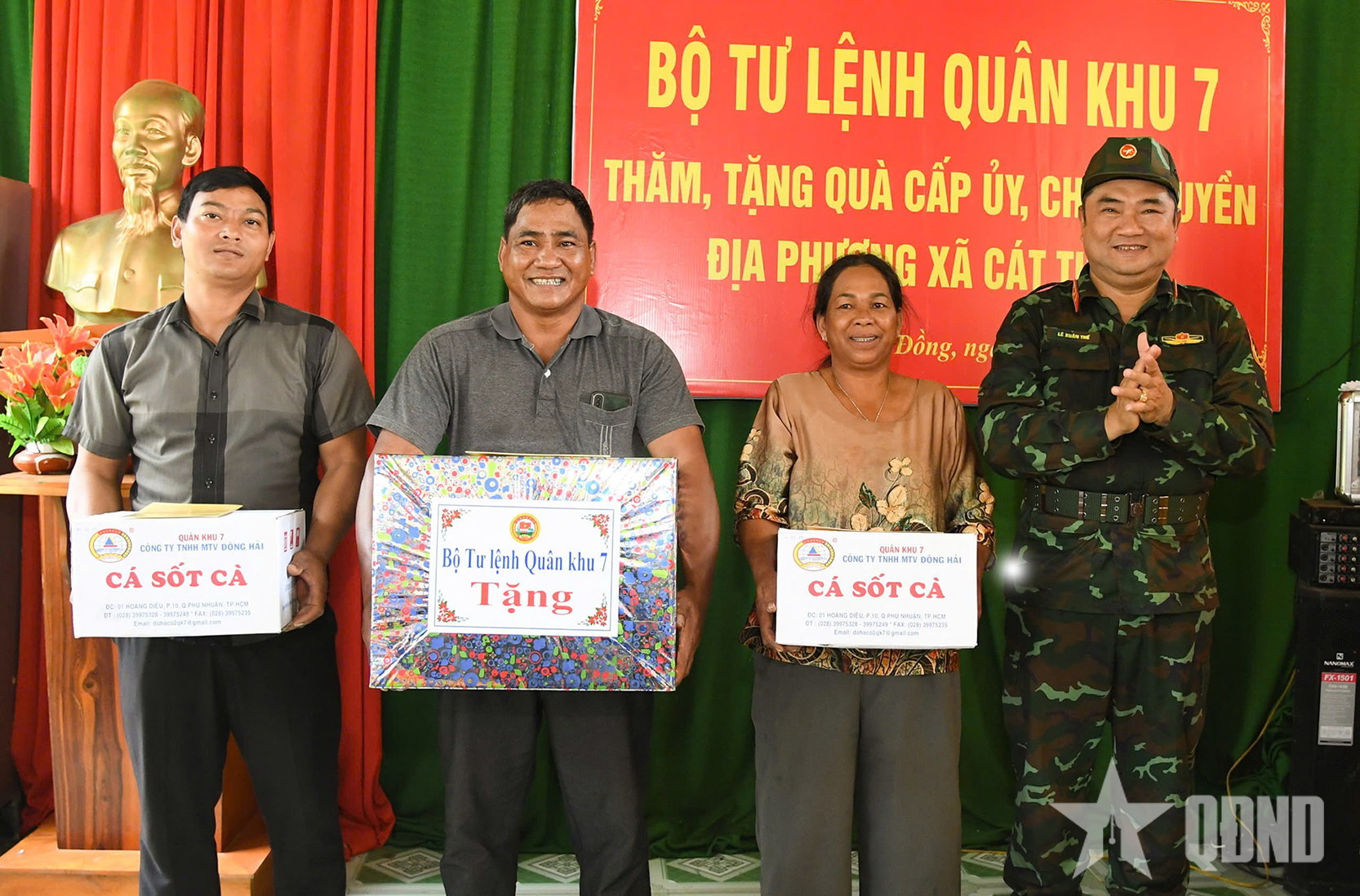 Đồng thời, Thủ trưởng Bộ tư lệnh Quân khu 7 ân cần thăm hỏi, động viên và mong muốn cấp ủy, chính quyền và nhân dân địa phương tiếp tục phát huy truyền thống đoàn kết, tích cực lao động sản xuất, chung sức xây dựng nông thôn mới; đồng thời phối hợp chặt chẽ với lực lượng vũ trang giữ vững an ninh chính trị, trật tự an toàn xã hội trên địa bàn.