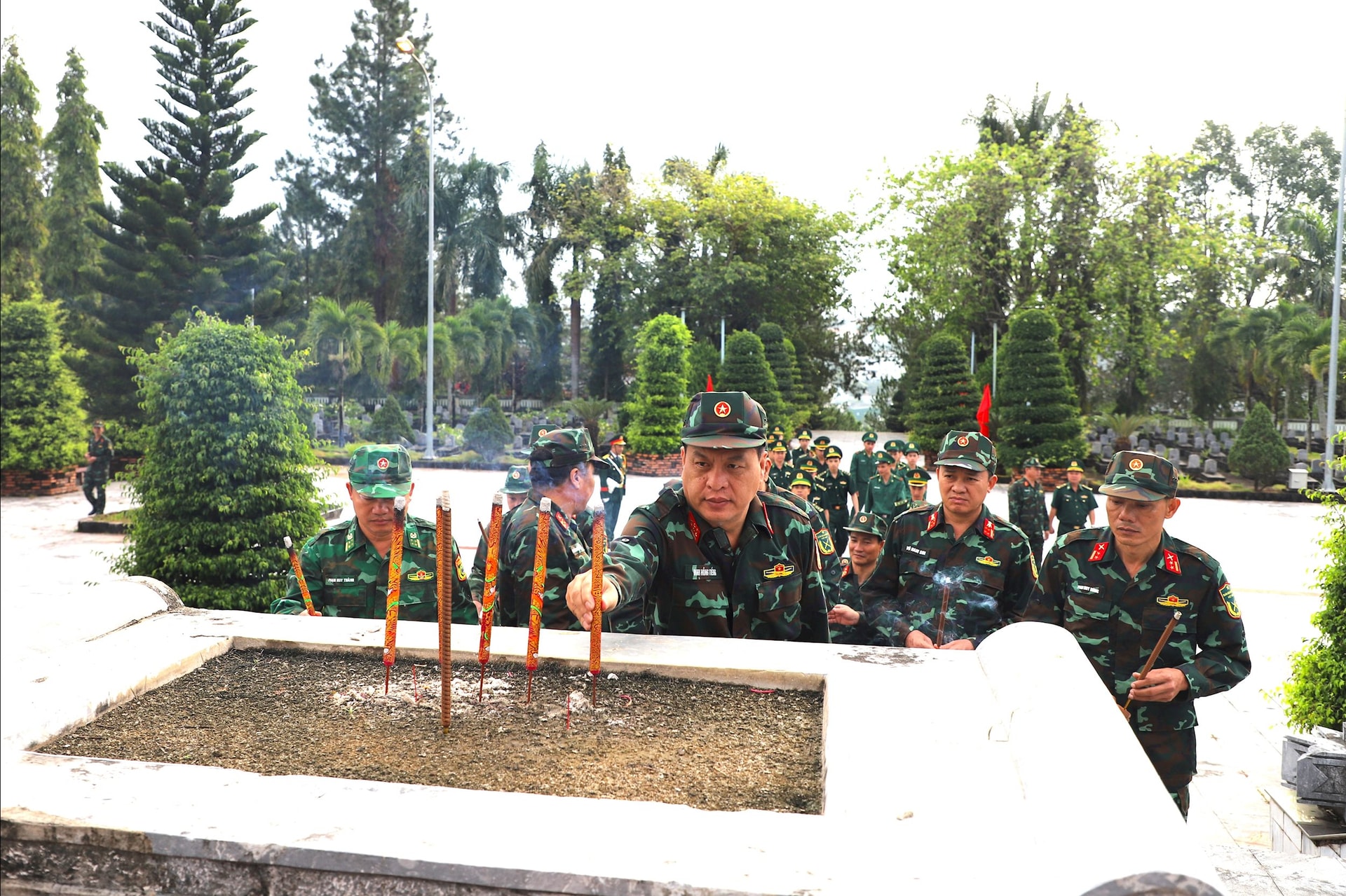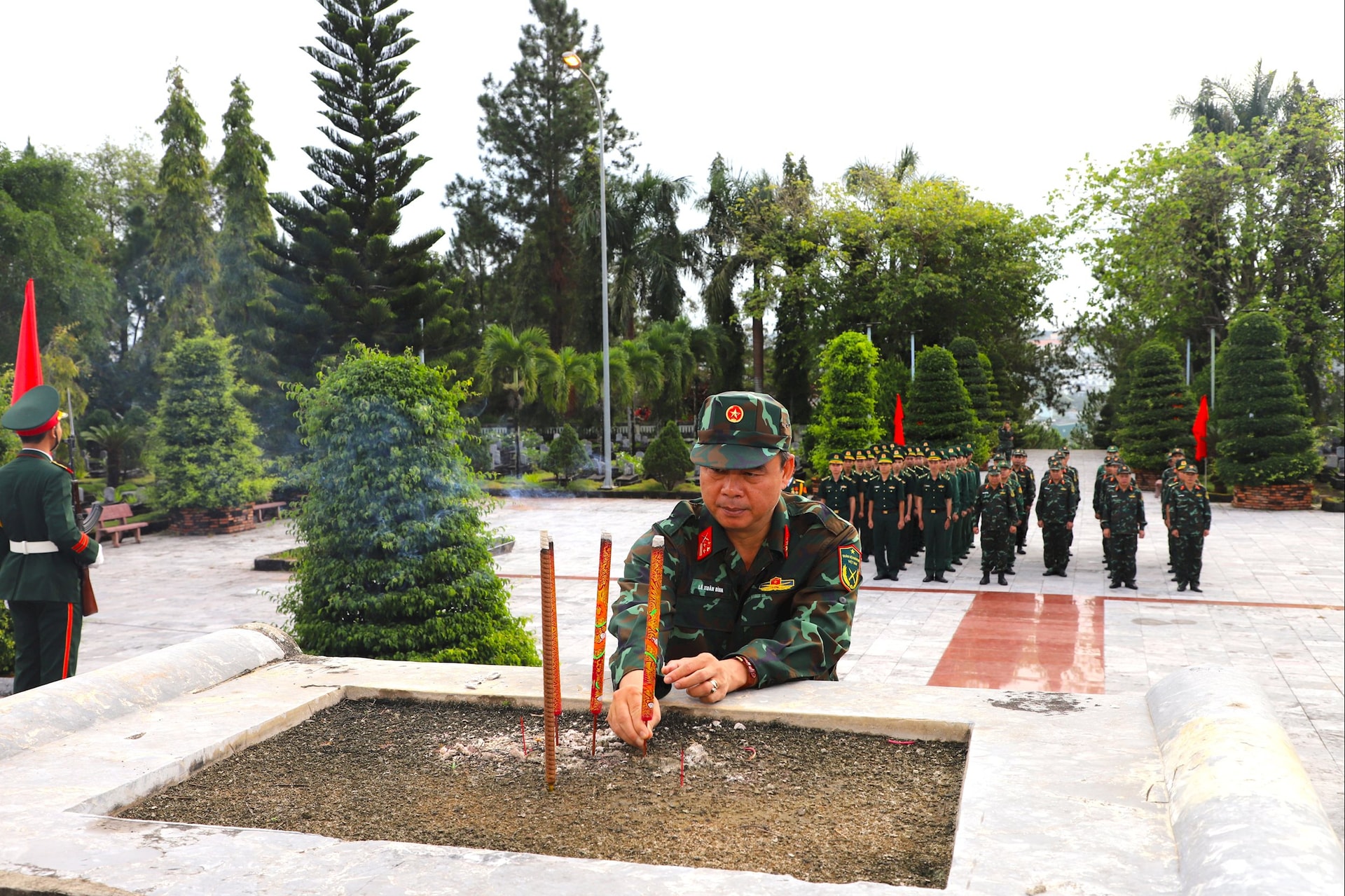 Đại tá Lê Xuân Bình, Phó Tư lệnh, kiêm Tham mưu trưởng Quân khu 7 thắp hương tưởng nhớ các anh hùng liệt sĩ