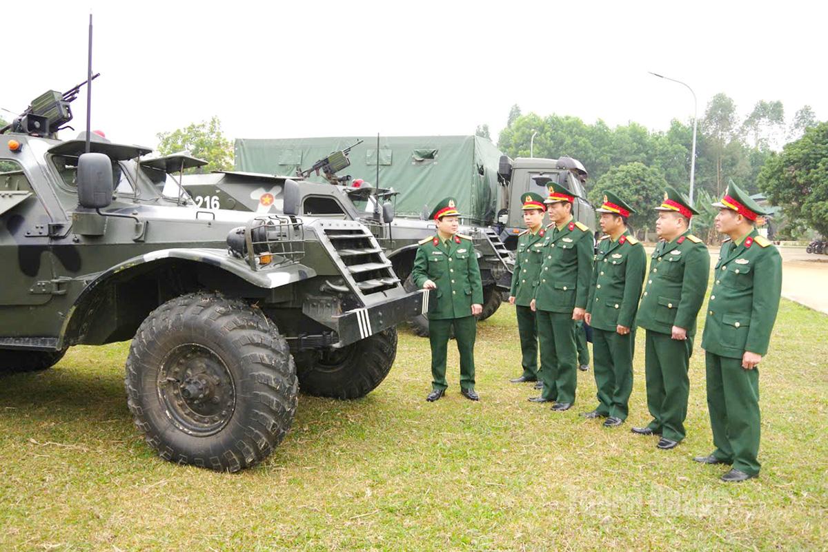 Đoàn công tác của Quân khu kiểm tra công tác sẵn sàng chiến đấu tại Đại đội Trinh sát, cơ giới 1, Phòng Tham mưu Bộ CHQS tỉnh.