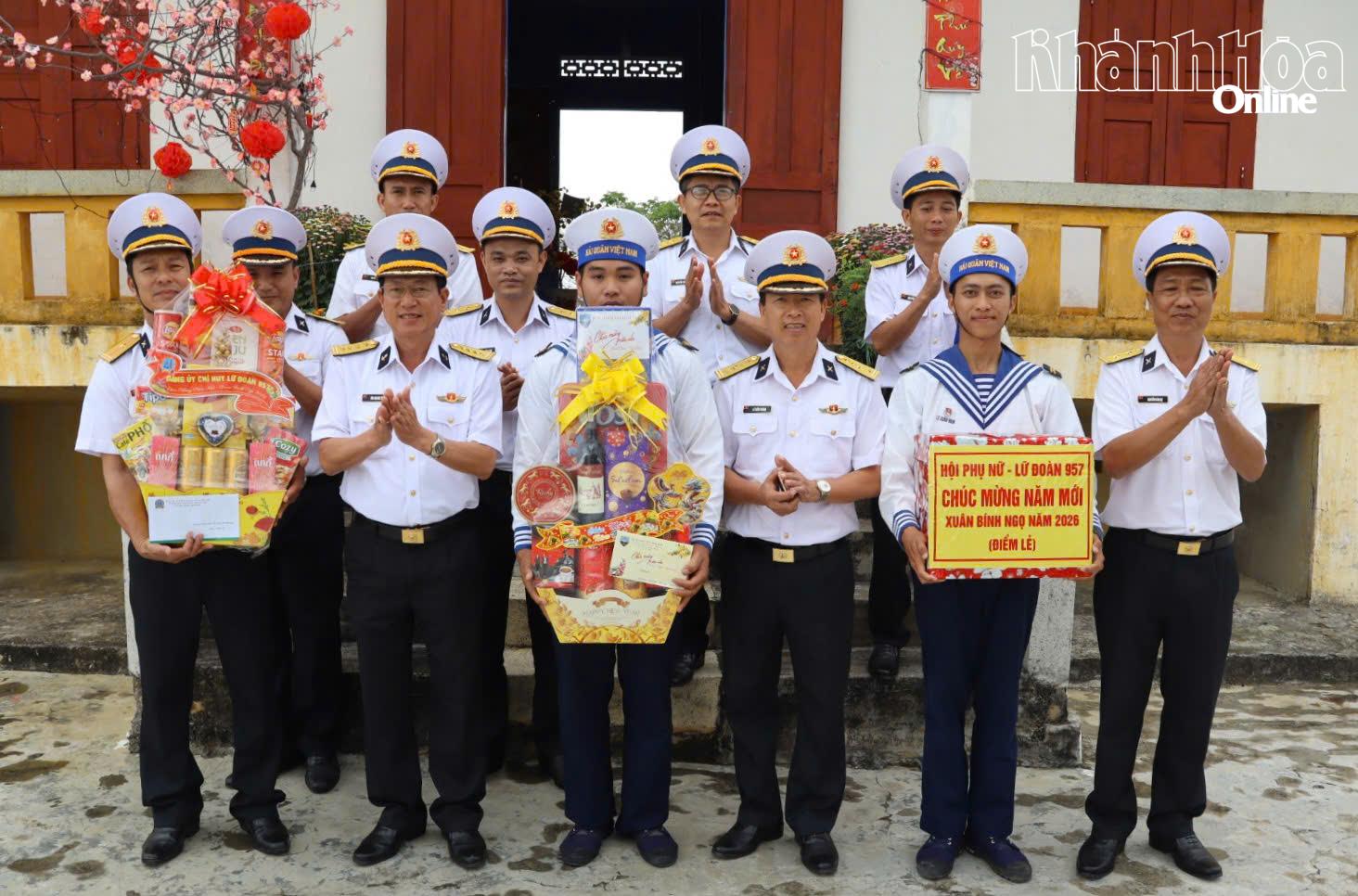 Ngày 11-2, đoàn công tác Bộ Tư lệnh Vùng 4 Hải quân do Đại tá Bùi Quang Thuyên - Phó Tư lệnh vùng làm Trưởng đoàn đến thăm, kiểm tra, động viên cán bộ, chiến sĩ đang thực hiện nhiệm vụ tại các điểm đóng quân lẻ của Lữ đoàn 957 nhân dịp Tết Nguyên đán Bính Ngọ 2026.