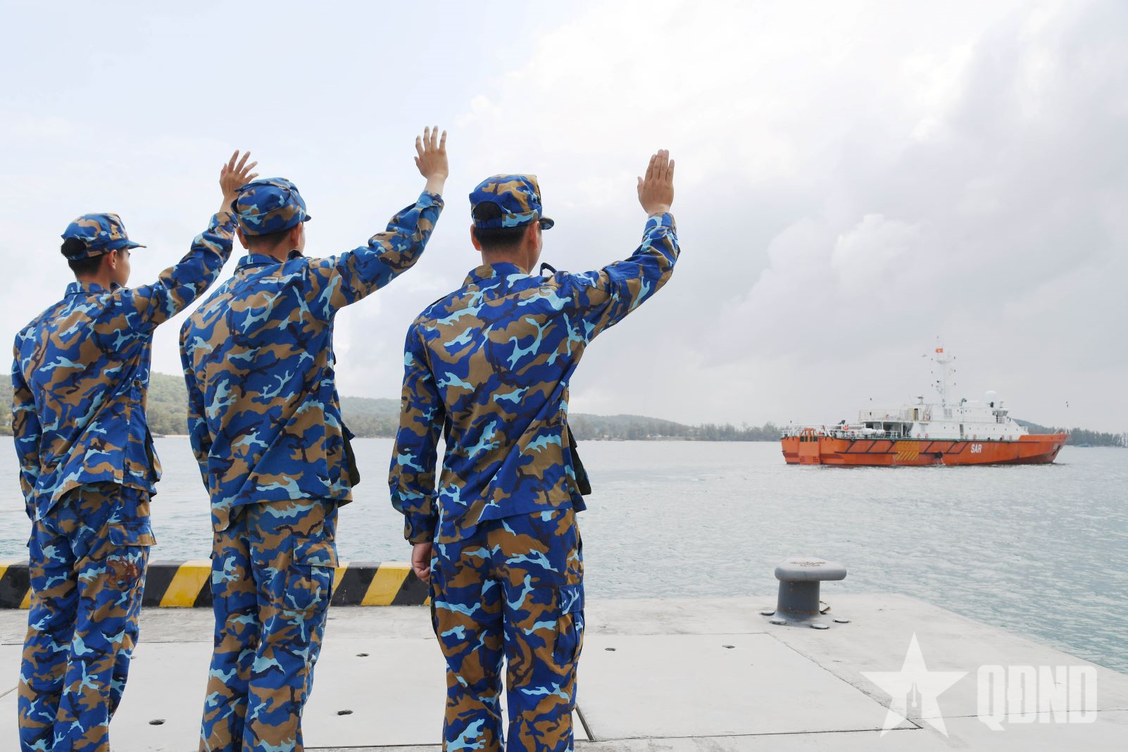 Cán bộ, chiến sĩ Lữ đoàn 127 tiễn Tàu 924 lên đường thực hiện nhiệm vụ.
