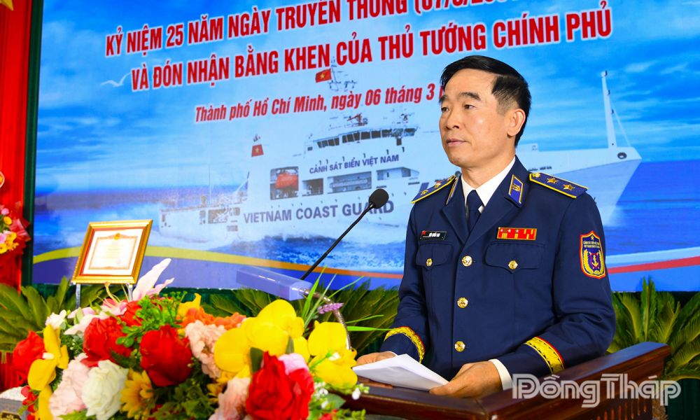 Trung tướng Bùi Quốc Oai, Bí thư Đảng ủy, Chính ủy Cảnh sát biển Việt Nam phát biểu chúc mừng tại buổi lễ.