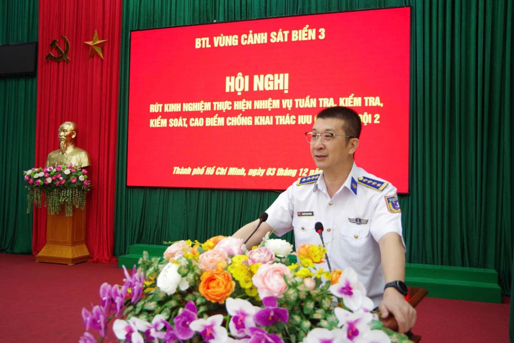 Phát biểu kết luận hội nghị, Đại tá Nguyễn Minh Khánh, Phó Tư lệnh, Tham mưu trưởng Bộ Tư lệnh Vùng Cảnh sát biển 3 đánh giá cao kết quả phối hợp tuần tra của các lực lượng; với tinh thần kiên quyết, chủ động, liên tục trong đấu tranh chống khai thác IUU, cán bộ, chiến sĩ các lực lượng đã nêu cao quyết tâm, trách nhiệm, khắc phục kịp thời những khó khăn để hoàn thành tốt nhiệm vụ được giao, quyết tâm ngăn chặn và chấm dứt tình trạng tàu cá Việt Nam vi phạm khai thác IUU, góp phần cùng các lực lượng chức năng gỡ thẻ vàng của Ủy ban châu Âu đối với thủy sản xuất khẩu của Việt Nam trong thời gian tới.