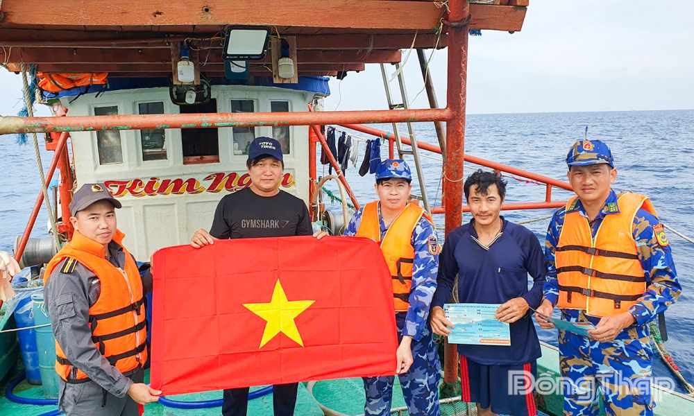 Tuyên truyền, tặng cờ Tổ quốc cho ngư dân.