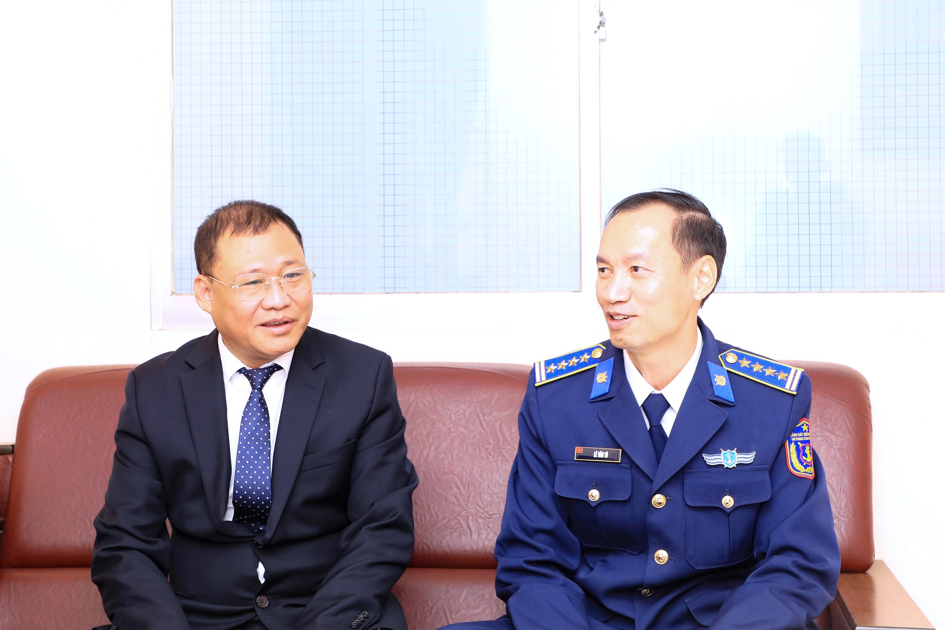 Đại tá Lê Văn Tú, Chính ủy Bộ Tư lệnh Vùng Cảnh sát biển 3 (bên phải) cảm ơn và đánh giá cao sự lan tỏa thông tin về biển đảo của Báo và Phát thanh, Truyền hình Lâm Đồng thời gian qua