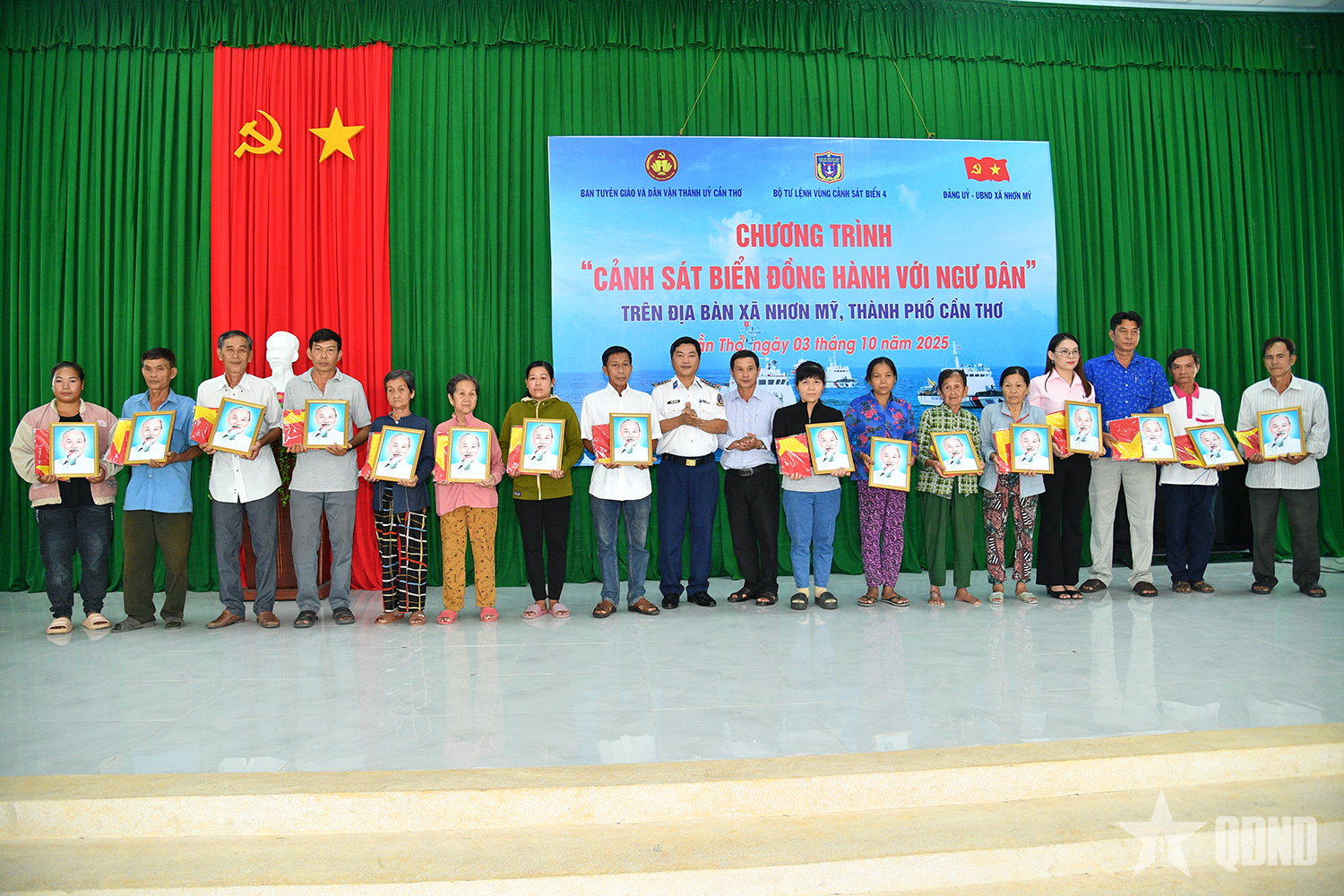Điểm nhấn của chương trình là 100 suất quà, mỗi suất trị giá 1 triệu đồng, được trao tận tay các gia đình chính sách và ngư dân gặp khó khăn trên địa bàn. Những món quà không chỉ mang giá trị vật chất mà còn chứa đựng tấm lòng sẻ chia, sự quan tâm sâu sắc từ lực lượng Cảnh sát biển-những người luôn sát cánh cùng người dân vùng biển trong mọi hoàn cảnh.