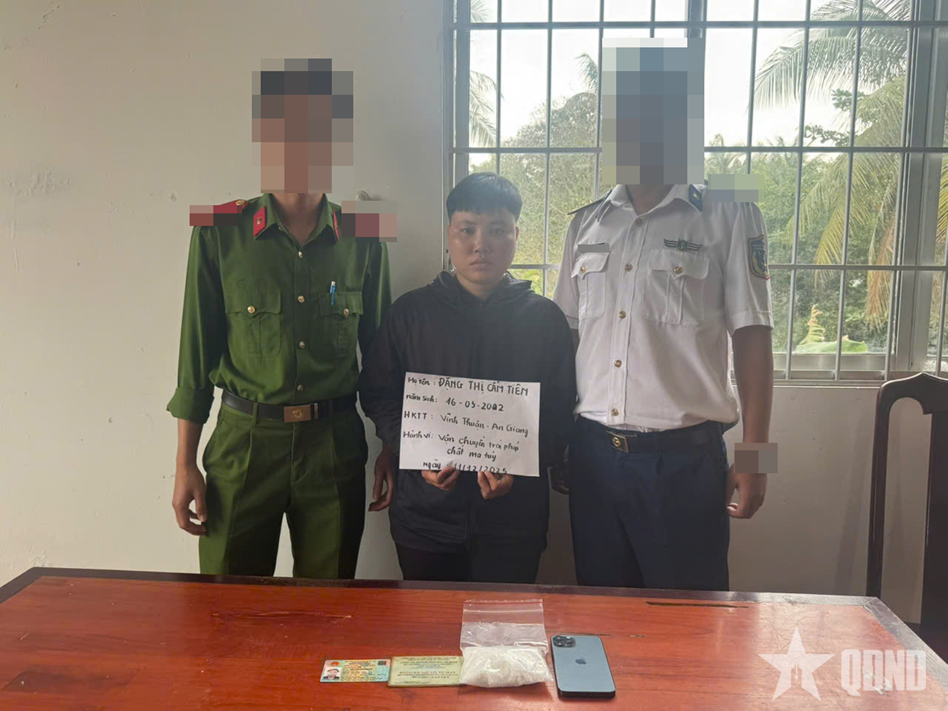 Trước đó, vào lúc 8 giờ 30 phút ngày 11-12, tại khu vực Chành xe Mai Linh Tân Bình (đường 30/4, Khu phố 1, Dương Đông, đặc khu Phú Quốc), lực lượng chức năng cũng đã bắt quả tang đối tượng Đặng Thị Cẩm Tiên (sinh năm 2002, hộ khẩu thường trú xã Vĩnh Thuận, tỉnh An Giang; chỗ ở hiện tại Tổ 13, Khu phố 12, Dương Đông) về hành vi vận chuyển trái phép chất ma túy.