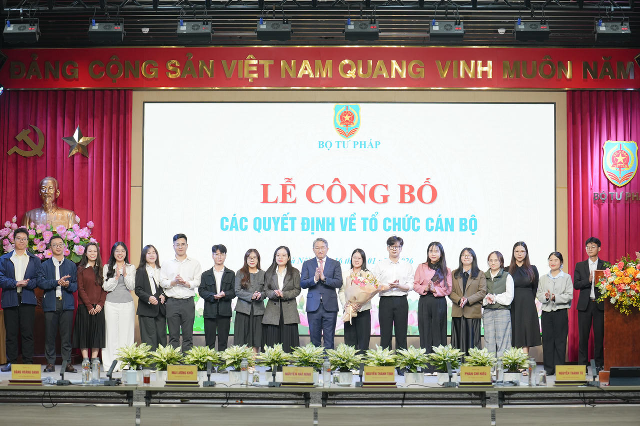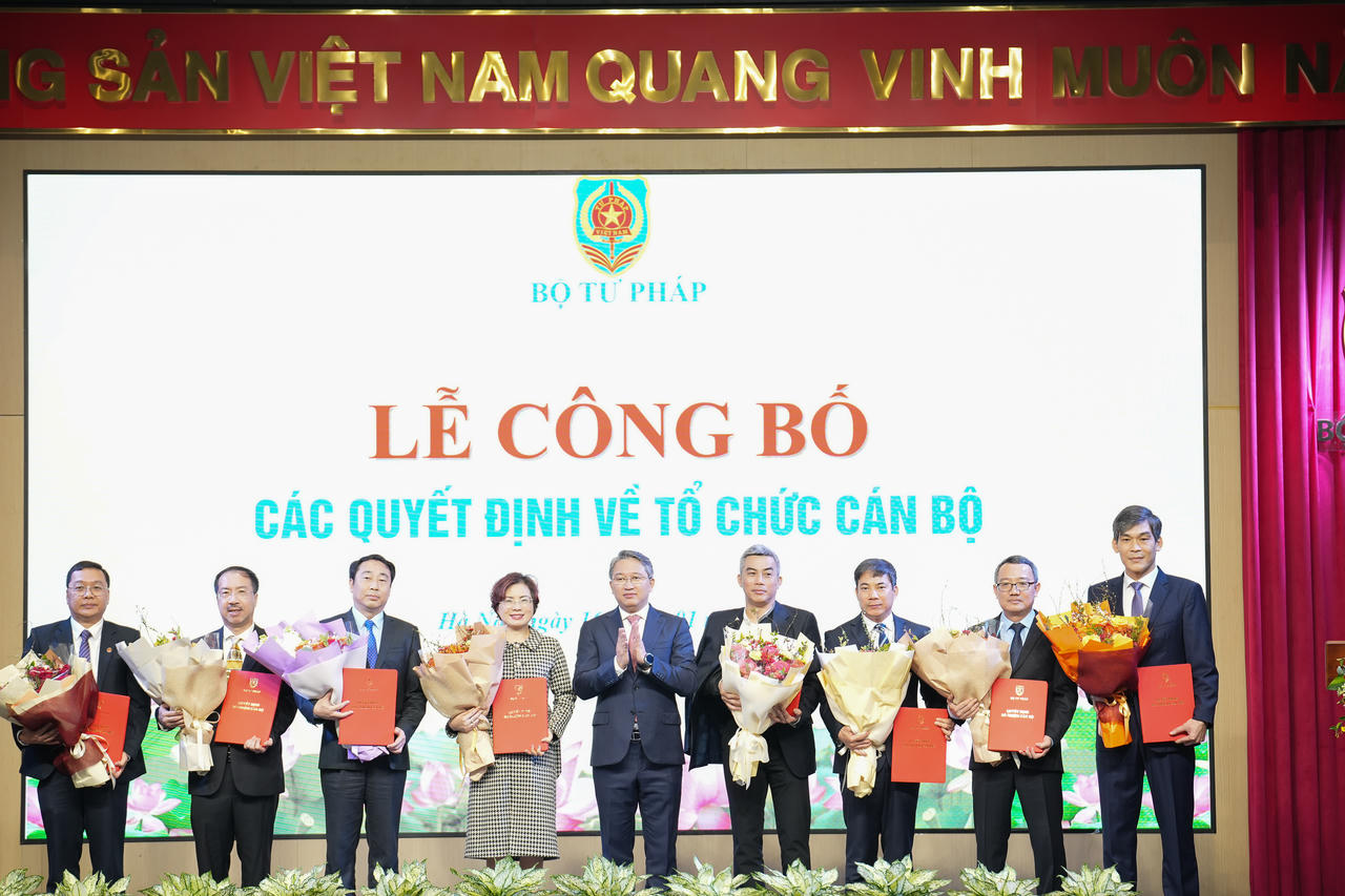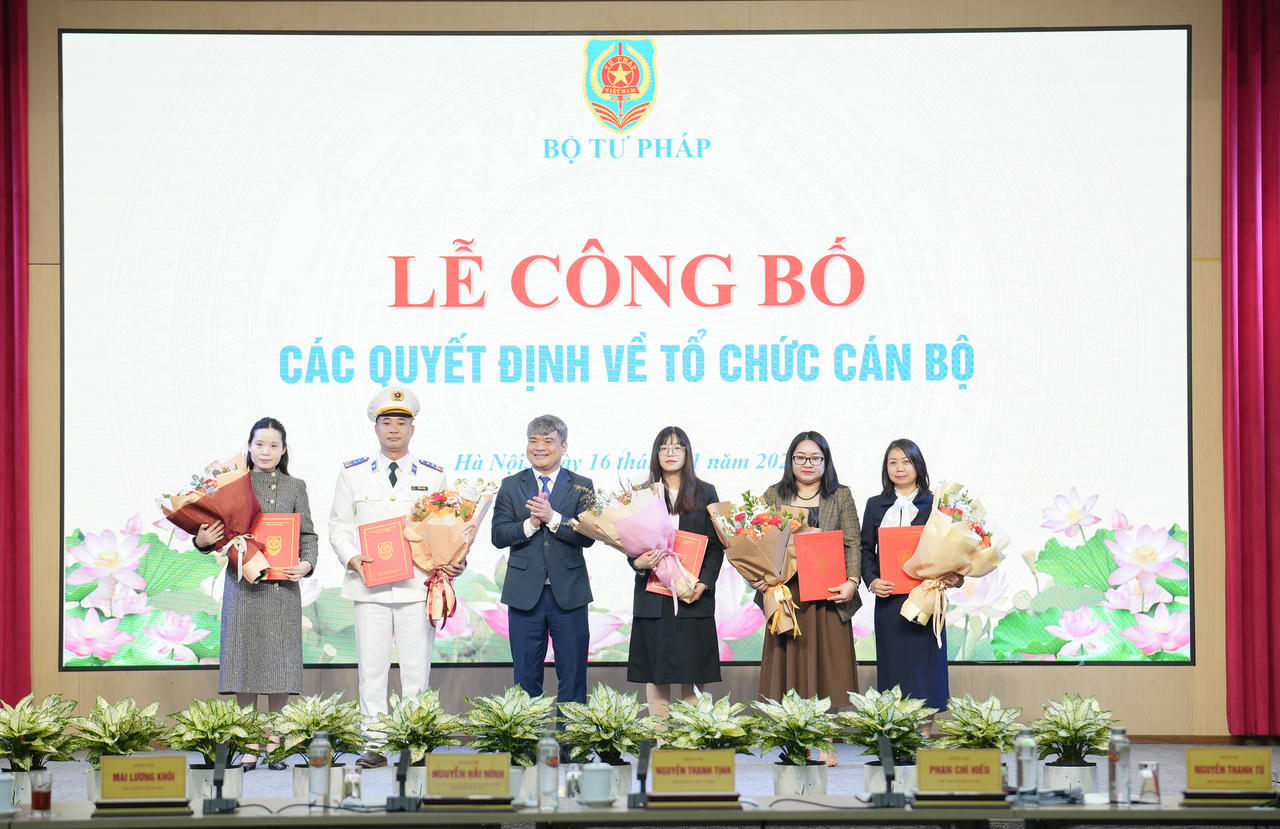 Tiếp nhận và bổ nhiệm ông Nguyễn Hùng Huế, Phó Cục trưởng Cục Kiểm soát thủ tục hành chính, Văn phòng Chính phủ giữ chức Phó Cục trưởng Cục Kiểm soát thủ tục hành chính, Bộ Tư pháp và giao Quyền Cục trưởng kể từ ngày15/1/2026; bổ nhiệm ông Lê Tiến Cường, Trưởng phòng Phòng Quản lý đầu tư, Cục Kế hoạch – Tài chính giữ chức Phó Cục trưởng Cục Kế hoạch – Tài chính; điều động và bổ nhiệm bà Phan Thị Thu Phương, Phó Chánh Văn phòng Bộ giữ chức Phó Cục trưởng Cục Kế hoạch – Tài chính; điều động và bổ nhiệm bà Lê thị Khánh Chi, Trưởng phòng Phòng Quản lý ngân sách – tài sản, Cục Kế hoạch tài chính giữ chức Phó Chánh Văn phòng Bộ; tiếp nhận và bổ nhiệm ông Vũ Đức Dũng, Phó Trưởng ban Ban Tổ chức – Cán bộ, Viện Hàn lâm Khoa học xã hội Việt Nam giữ chức Phó Cục trưởng Cục Công nghệ thông tin; bổ nhiệm ông Phan Huy Hiếu, Thẩm tra viên cao cấp, Trưởng ban Ban Kiểm tra, giải quyết khiếu nại, tố cáo, Cục Quản lý Thi hành án dân sự giữ chức Phó Cục trưởng Cục Quản lý Thi hành án dân sự; điều động và bổ nhiệm bà Đỗ Thị Thanh Hương, Phó Cục trưởng Cục Kiểm tra văn bản và Quản lý xử lý vi phạm hành chính giữ chức Phó Vụ trưởng Vụ Công tác xây dựng văn bản quy phạm pháp luật.