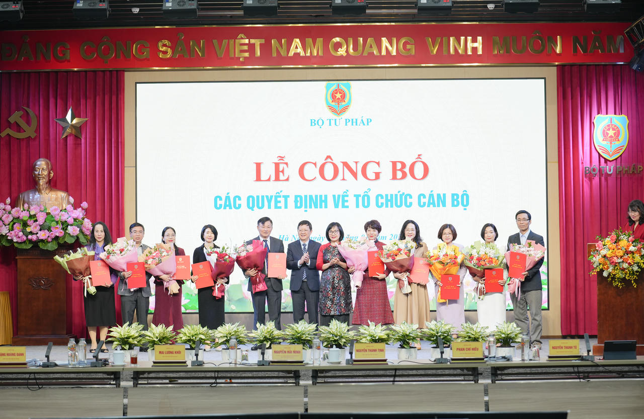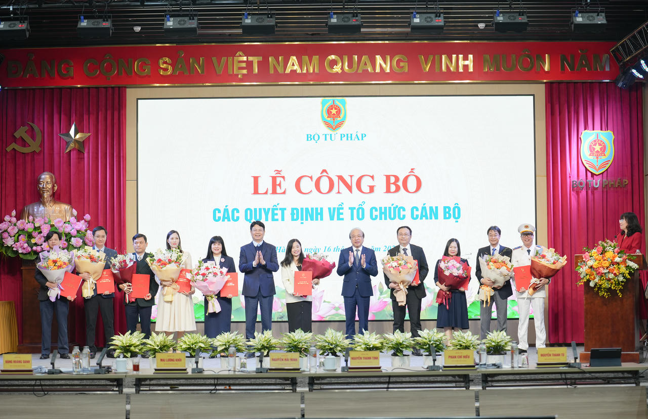 Tiếp nhận và bổ nhiệm ông Phan Hoàng Ngọc, Phó Hiệu trưởng Trường Cao đẳng Luật miền Bắc giữ chức Phó Cục trưởng Cục Kiểm tra văn bản và Tổ chức Thi hành pháp luật và giao kiêm chức vụ Hiệu trưởng Trường Cao đẳng Luật miền Bắc cho đến khi hoàn thành việc sáp nhập Trường; bổ nhiệm bà Phạm Hồ Hương, Phó Vụ trưởng Vụ Pháp luật quốc tế giữ chức Phó Cục trưởng Cục Pháp luật quốc tế và Giải quyết tranh chấp đầu tư quốc tế; bổ nhiệm bà Lại Thị Vân Anh, Phó Vụ trưởng Vụ Pháp luật quốc tế giữ chức Phó Cục trưởng Cục Pháp luật quốc tế và Giải quyết tranh chấp đầu tư quốc tế; bổ nhiệm ông Nguyễn Đức Kiên, Phó Vụ trưởng Vụ Pháp luật quốc tế giữ chức Phó Cục trưởng Cục Pháp luật quốc tế và Giải quyết tranh chấp đầu tư quốc tế; bổ nhiệm ông Lê Đại Hải, Phó Vụ trưởng Vụ Pháp luật dân sự - kinh tế giữ chức Phó Cục trưởng Cục Pháp luật dân sự - kinh tế; bổ nhiệm bà Lê Thị Hoàng Thanh, Phó Vụ trưởng Vụ Pháp luật dân sự - kinh tế giữ chức Phó Cục trưởng Cục Pháp luật dân sự - kinh tế; bổ nhiệm bà Nguyễn Chi Lan, Phó Vụ trưởng Vụ Pháp luật dân sự - kinh tế giữ chức Phó Cục trưởng Cục Pháp luật dân sự - kinh tế; bổ nhiệm ông, Cao Đăng Vinh, Phó Vụ trưởng Vụ Pháp luật dân sự - kinh tế giữ chức Phó Cục trưởng Cục Pháp luật dân sự - kinh tế.
