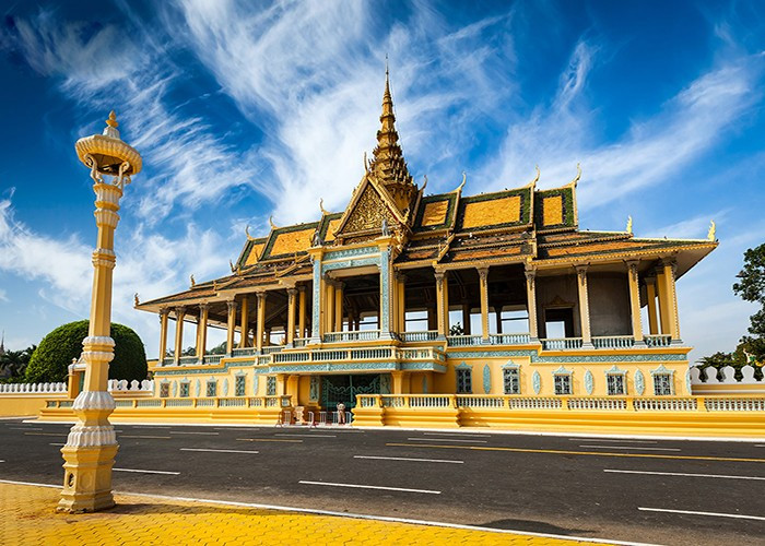 Tại thủ đô Phnom Penh, du khách sẽ cảm nhận rõ nét sự hòa quyện giữa truyền thống và nhịp sống đương đại. Cung điện Hoàng gia nằm bên bờ sông Mekong vẫn giữ nguyên vẻ nguy nga, là nơi diễn ra các nghi lễ hoàng gia và sự kiện trọng đại của đất nước. Ảnh dulich