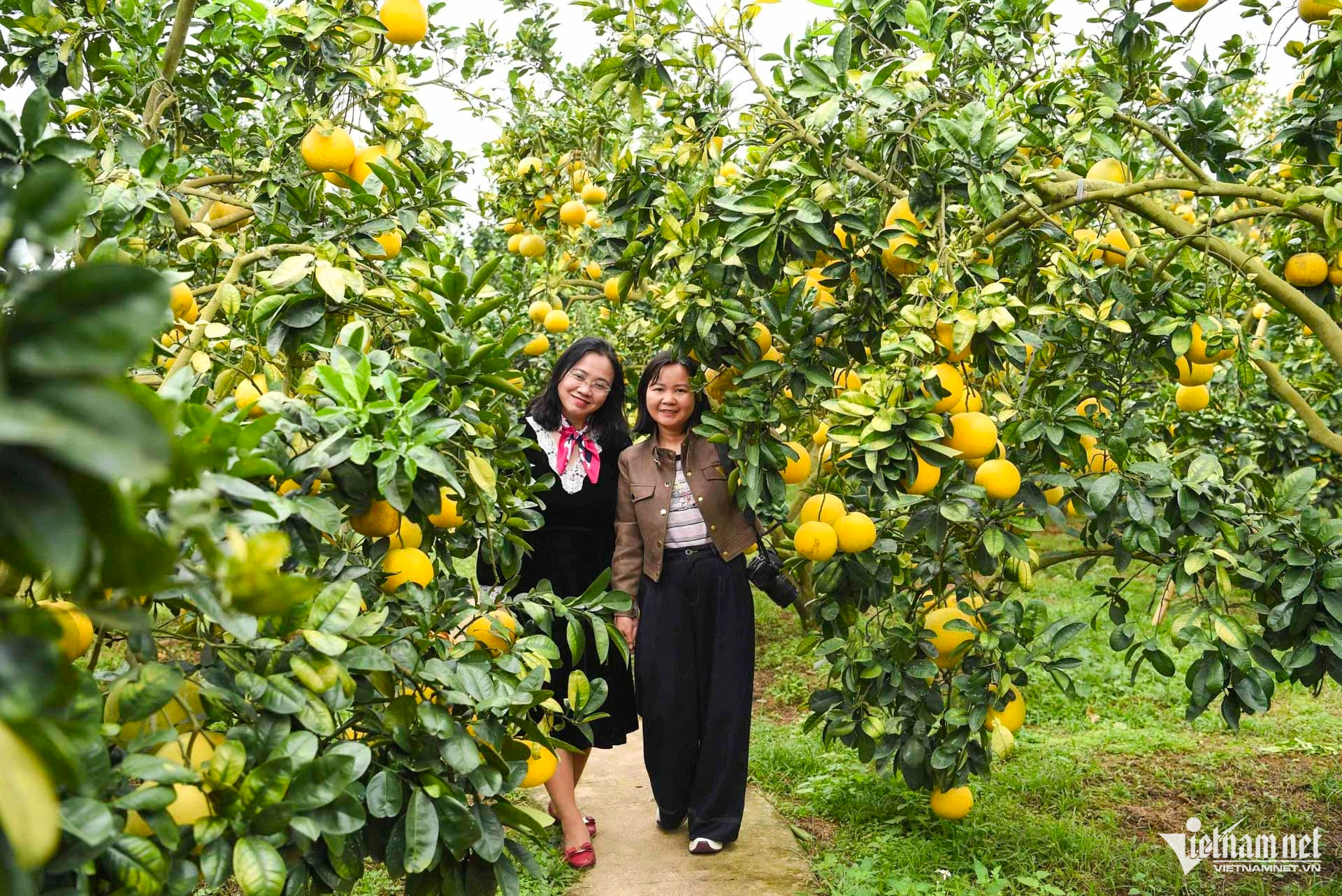Mỗi mùa hoa quả chín, gia đình ông Én lại đón hàng trăm lượt khách du lịch đến tham quan, trải nghiệm vườn bưởi.