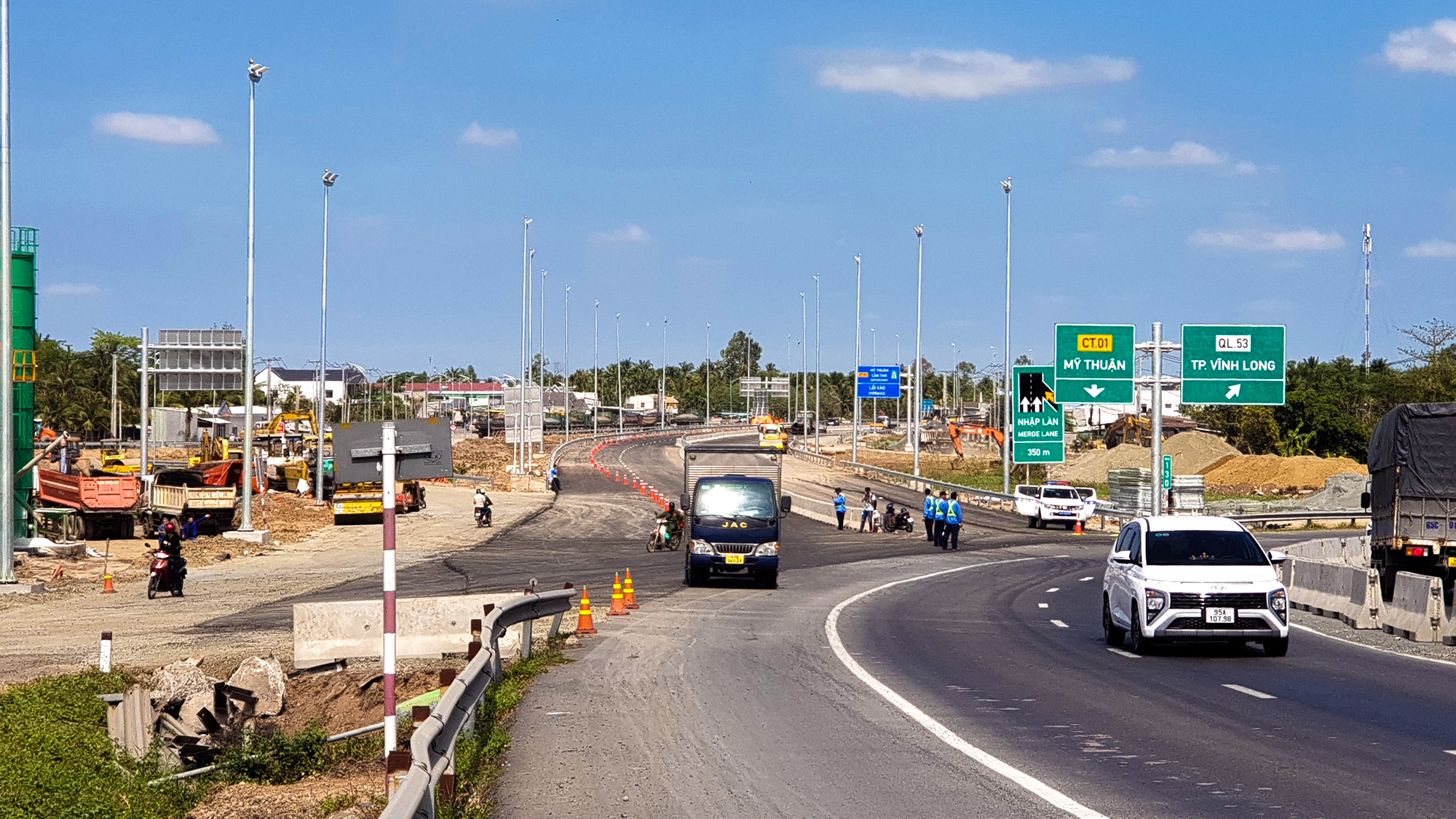 Cao tốc Mỹ Thuận - Cần Thơ được đưa vào khai thác từ cuối tháng 12-2023. Tuy nhiên, dự án hiện vẫn đang tiếp tục thi công một số hạng mục bổ sung.
