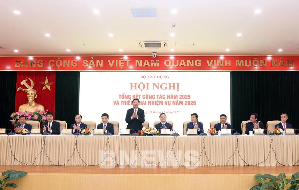 Đây là thông tin ghi nhận tại Hội nghị tổng kết công tác năm 2025 và triển khai nhiệm vụ năm 2026 của Bộ Xây dựng tổ chức ngày 21/12, diễn ra theo hình thức trược tiếp và trực tuyến. Phó Thủ tướng Chính Phủ Trần Hồng Hà dự và đồng chủ trì hội nghị.