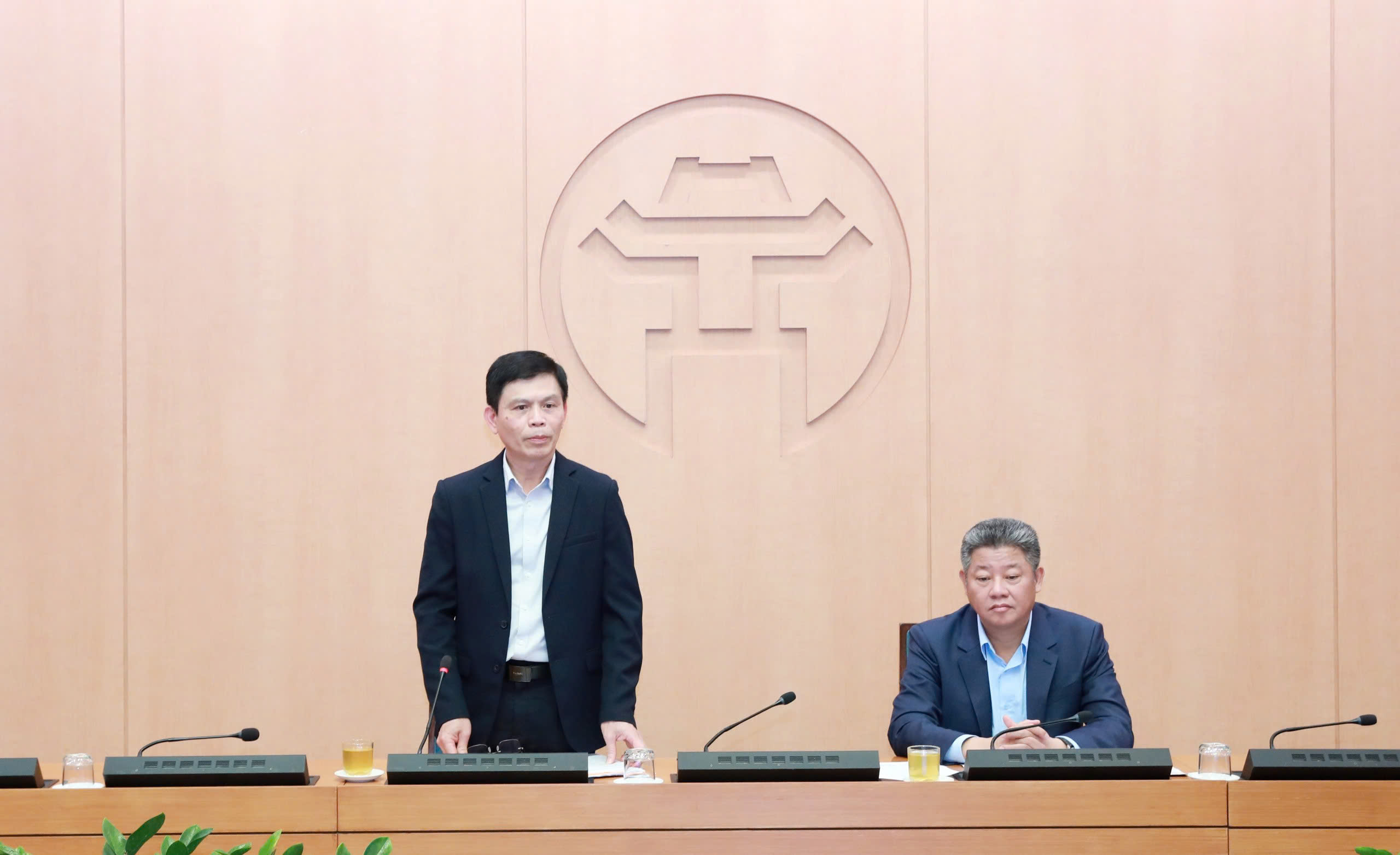 Thứ trưởng Bộ Xây dựng Lê Anh Tuấn và Phó Chủ tịch UBND TP Hà Nội Nguyễn Mạnh Quyền đồng chủ trì buổi làm việc.