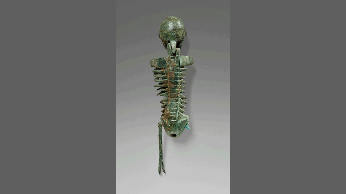 Bộ xương nhỏ bằng đồng khoảng 2.000 tuổi được người La Mã cổ đại xem như món quà dành tặng cho khách tham dự bữa tiệc. Theo các chuyên gia, bộ xương ban đầu có hình dáng hoàn chỉnh nhưng ngày nay bị mất một số phần, bao gồm chân phải và 2 tay. Ảnh: Getty Museum Collection (Public Domain).
