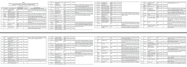Danh sách doanh nghiệp có sản phẩm bị thu hồi.