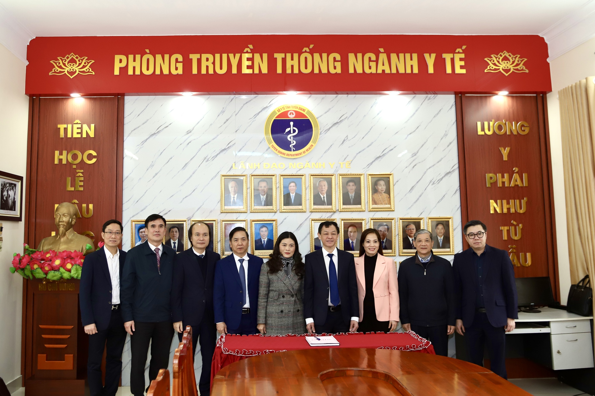 Đoàn công tác Bộ Y tế chụp ảnh tại Phòng Truyền thống ngành Y tế tại Sở Y tế tỉnh Tuyên Quang.