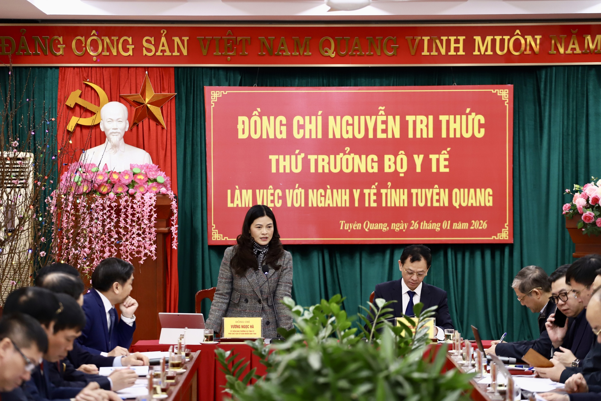 Phát biểu tại buổi làm việc, bà Vương Ngọc Hà, Phó Chủ tịch Ủy ban nhân dân tỉnh Tuyên Quang, nhấn mạnh yêu cầu xây dựng và triển khai các chính sách y tế phải bám sát đặc thù địa bàn, nhất là đối với vùng đồng bào dân tộc thiểu số, vùng sâu, vùng xa. Theo bà, với địa hình rộng, giao thông cách trở, có những xã cách trung tâm hàng chục kilômét, việc tiếp cận dịch vụ y tế của người dân còn nhiều hạn chế, đòi hỏi cách tiếp cận linh hoạt, không thể áp dụng cứng nhắc một mô hình chung.