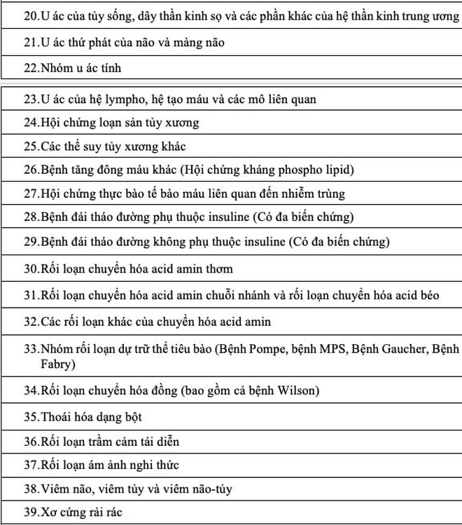 Danh mục 62 bệnh hiếm và bệnh hiểm nghèo , cho phép người tham gia BHYT mắc các bệnh này được thông tuyến trực tiếp lên các bệnh viện Trung ương mà không cần thủ tục cấp giấy chuyển tuyến.