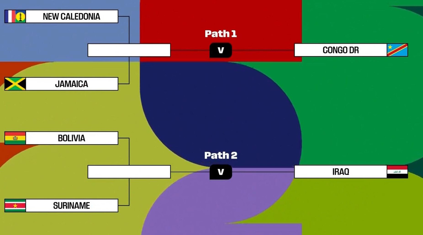 Iraq sẽ đối đầu với Suriname hoặc Bolivia ở trận đấu quyết định cho tấm vé đến với ngày hội bóng đá lớn nhất hành tinh. Ở nhánh còn lại, Cộng hòa Congo sẽ đối đầu với Jamaica hoặc New Caledonia.