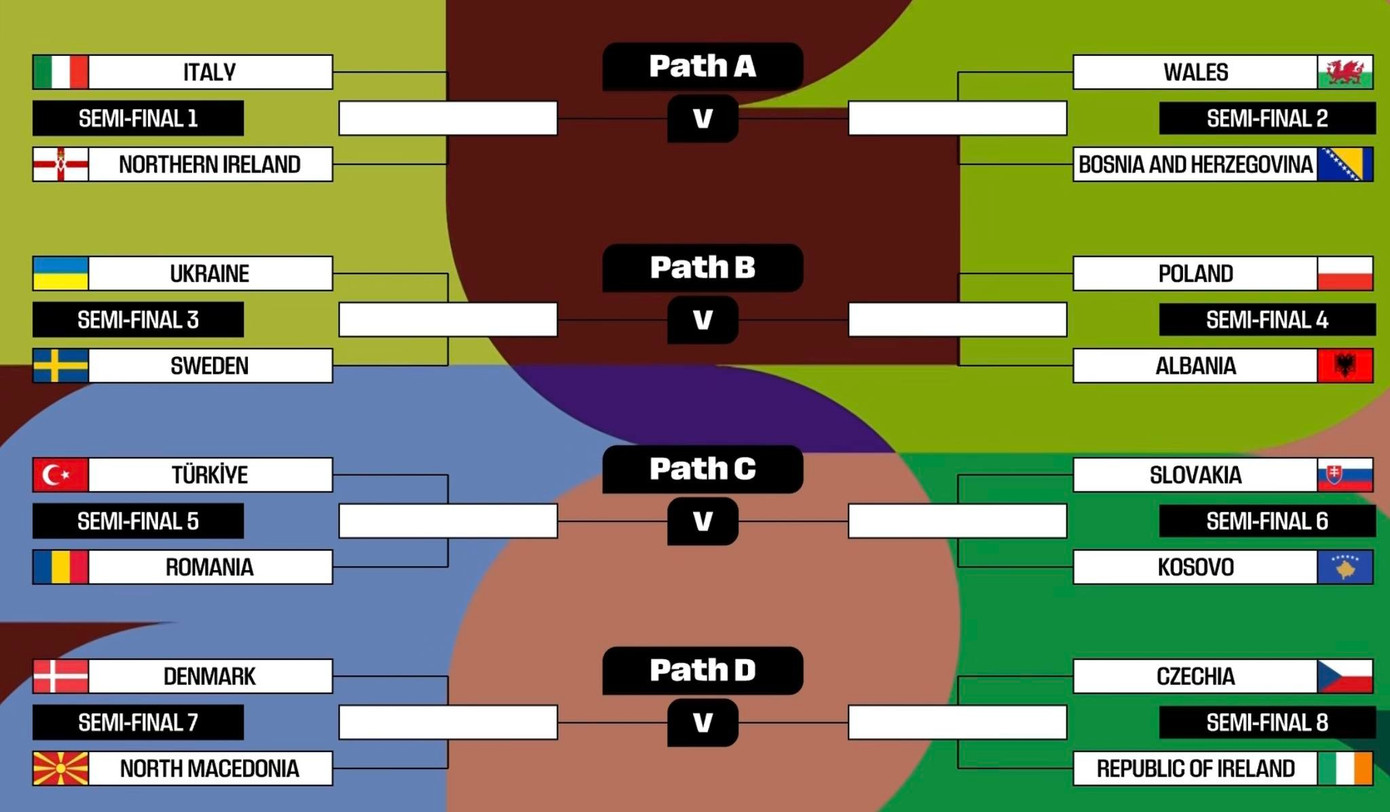 Ở nhánh đấu đầu tiên, đội tuyển Italia đối đầu với Bắc Ireland ở vòng bán kết. Nếu vượt qua đối thủ này, đội tuyển từng 4 lần vô địch thế giới sẽ chạm trán xứ Wales hoặc Bosnia và Herzegovina. Thầy trò Gattuso đã tránh được việc phải gặp Thụy Điển và Bắc Macedonia, đây là hai đội tuyển đã khiến Italia phải ngồi nhà xem World Cup vào các năm 2018 và 2022.