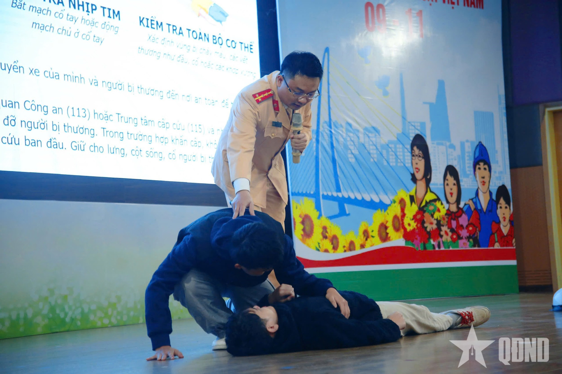 Ngoài nội dung pháp luật, học sinh được các báo cáo viên hướng dẫn xử lý các tình huống thương tích ngoại viện, như kiểm tra vết thương, sơ cấp cứu trong những trường hợp tai nạn thương tích, tai nạn giao thông, nhằm nâng cao kỹ năng xử lý cấp cứu ngoại viện đối với nhóm lứa tuổi học sinh.