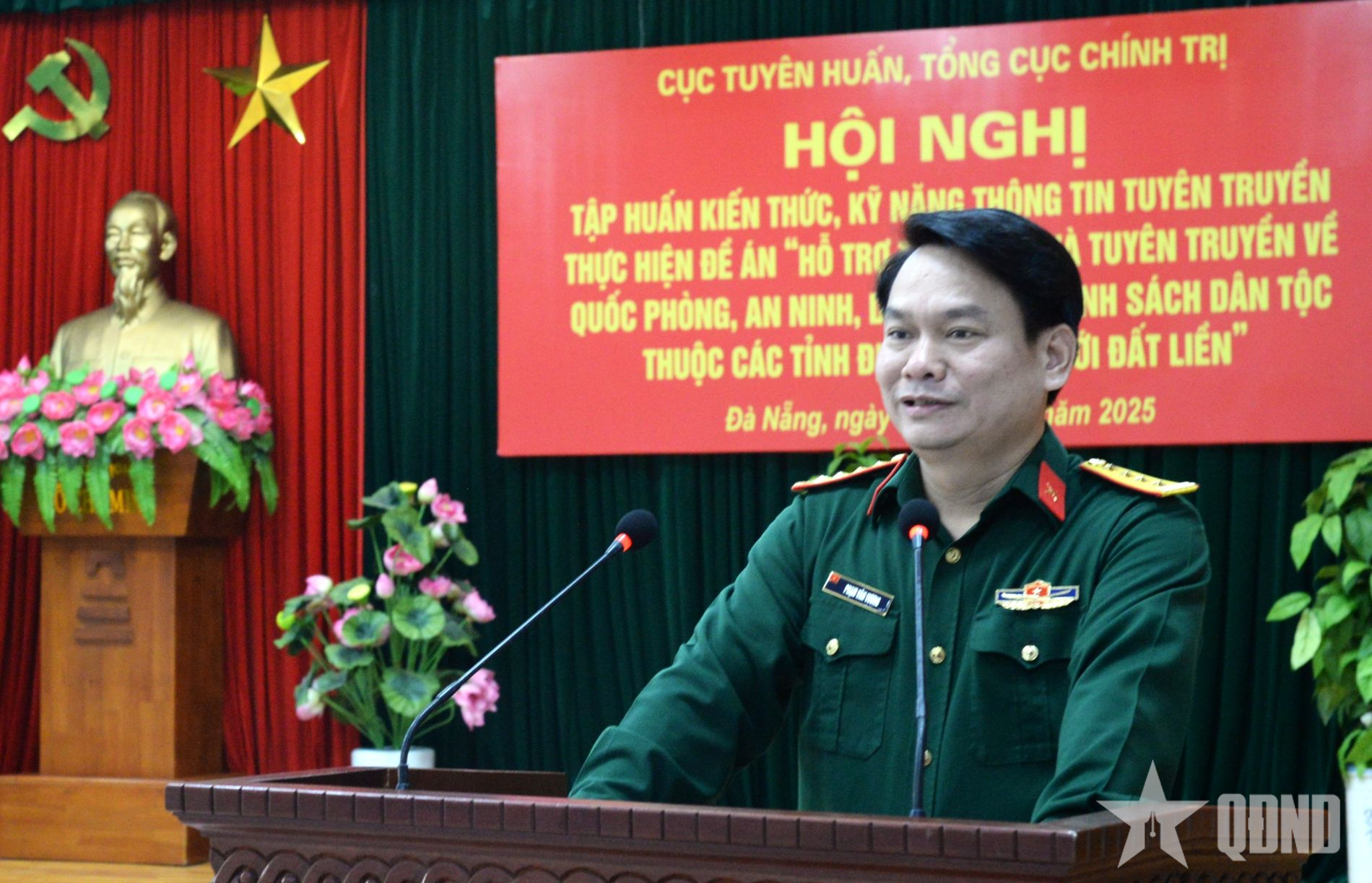 Phát biểu khai mạc, Đại tá Phạm Văn Vương, Phó cục trưởng Cục Tuyên huấn, Trưởng ban Tổ chức lớp tập huấn, nhấn mạnh: Ngày 18-10-2024, Thủ tướng Chính phủ ban hành Quyết định số 1219 phê duyệt Đề án“Hỗ trợ thông tin và tuyên truyền về quốc phòng, an ninh, dân tộc và chính sách dân tộc thuộc các tỉnh địa bàn biên giới đất liền; ngày 26-5-2025, Bộ Quốc phòng ban hành Kế hoạch số 2898 về thực hiện Đề án 1219 trong Bộ Quốc phòng; trên cơ sở đó, các cơ quan, đơn vị, địa phương đã triển khai thực hiện chặt chẽ, nghiêm túc, bước đầu đạt được kết quả quan trọng.