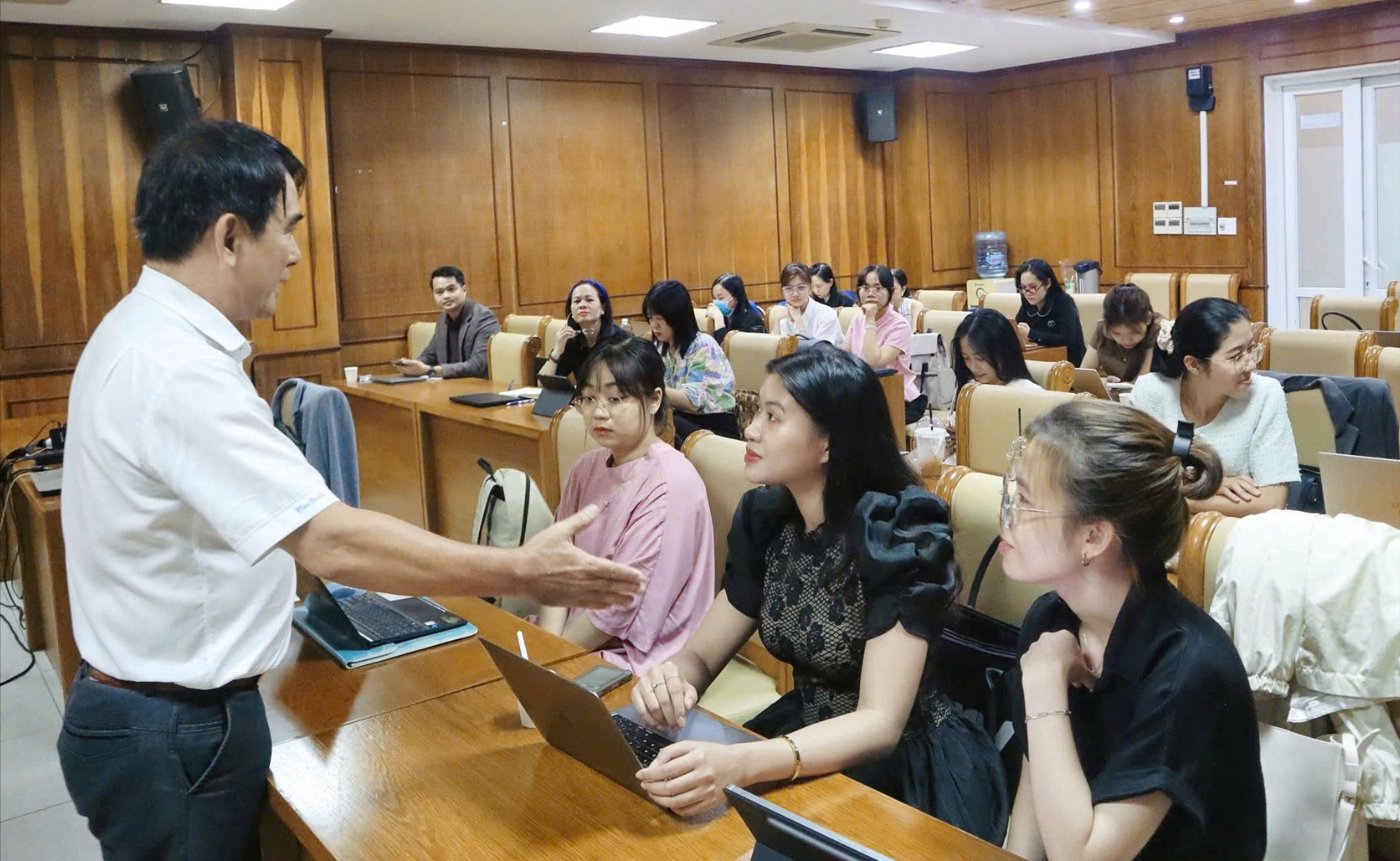 Với kinh nghiệm thực tiễn phong phú, giảng viên không chỉ truyền đạt kỹ thuật phỏng vấn, đặt câu hỏi, mà còn đi sâu vào bản chất của đối thoại báo chí