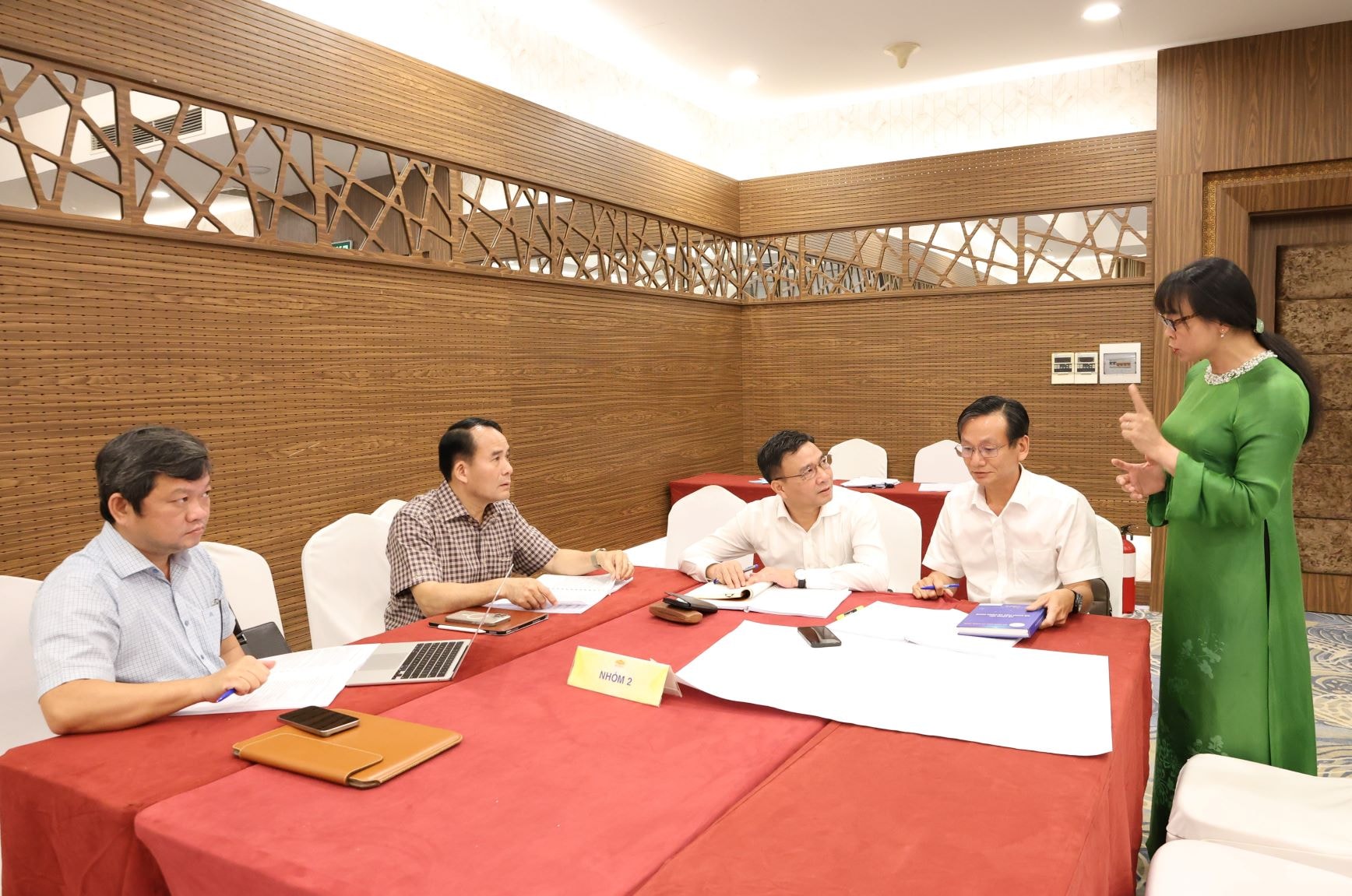 Đại biểu Huỳnh Kim Minh Tâm (tỉnh An Giang) tham gia trả lời tình huống báo cáo viên đặt ra trong bài giảng
