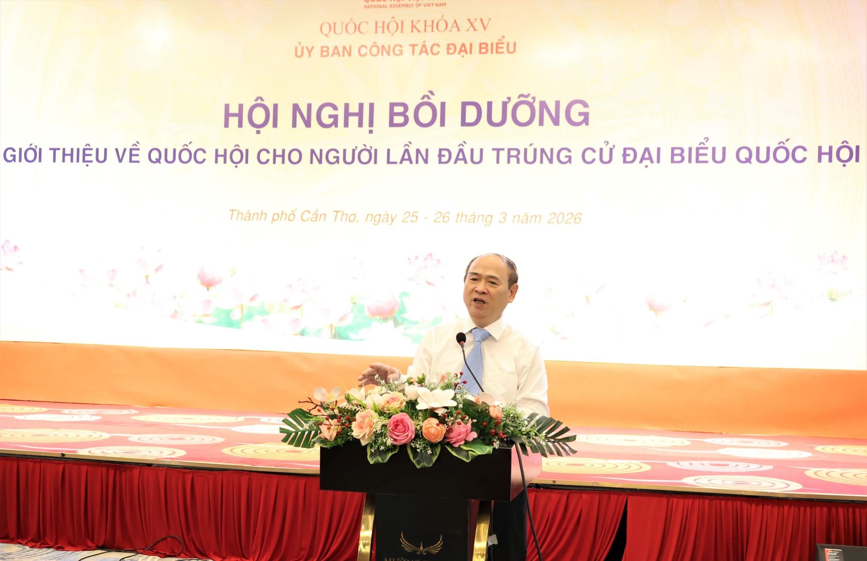 Báo cáo viên Bùi Đặng Dũng, nguyên Phó Chủ nhiệm Ủy ban Tài chính - Ngân sách chia sẻ về kỹ năng tiếp xúc cử tri của ĐBQH