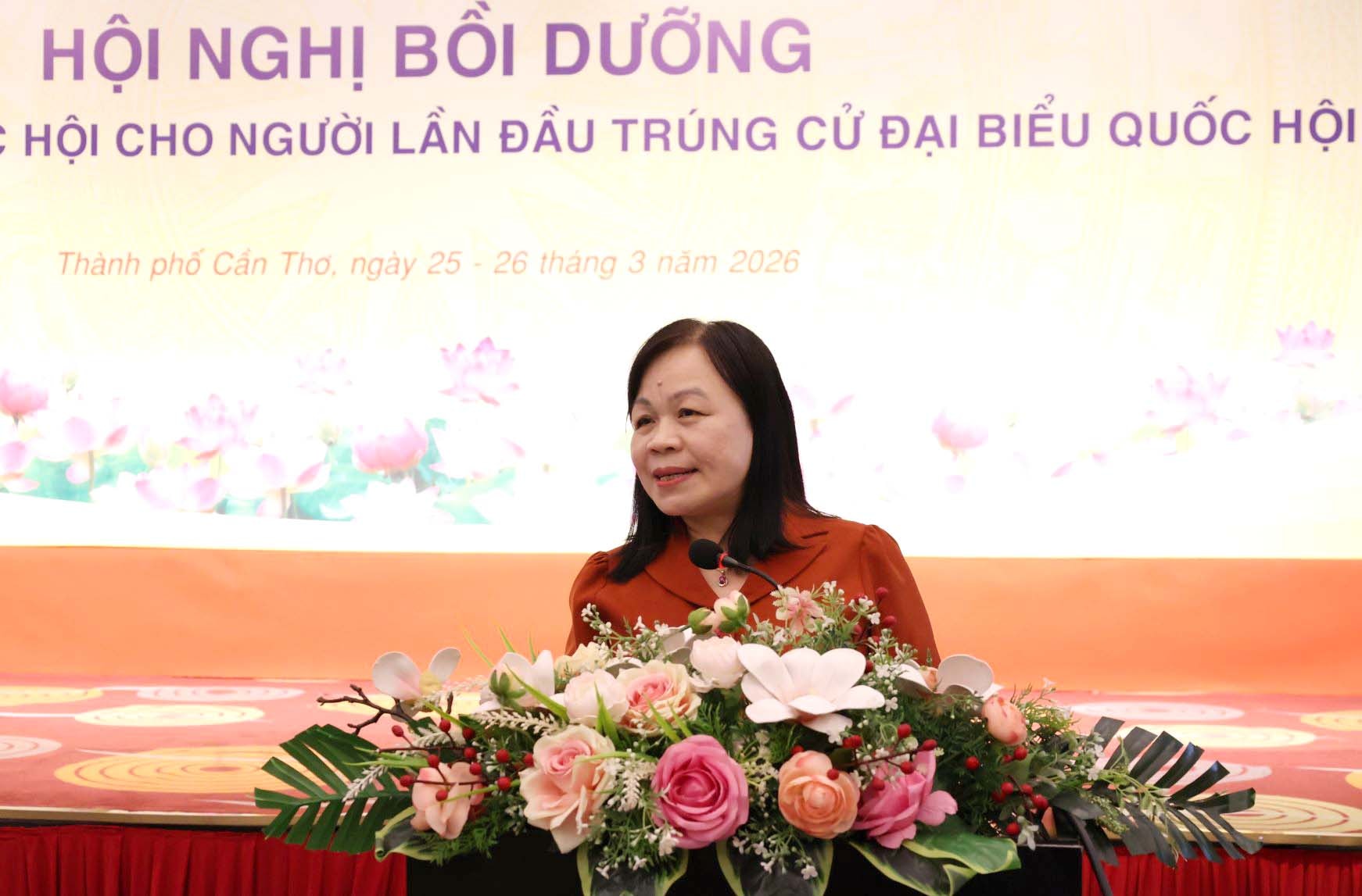 Phó Chủ nhiệm Ủy ban Văn hóa và Xã hội Nguyễn Thị Mai Hoa chia sẻ về kỹ năng tiếp xúc với truyền thông, báo chí của đại biểu Quốc hội