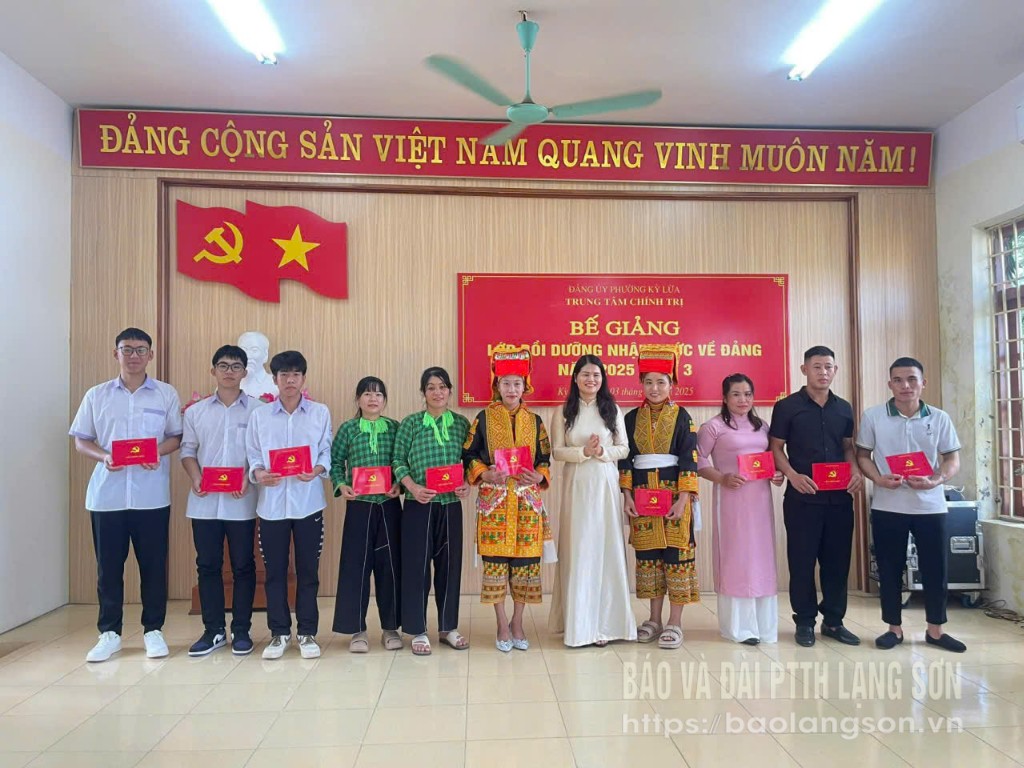 Lãnh đạo Trung tâm Chính trị phường Kỳ Lừa trao chứng nhận cho học viên hoàn thành bồi dưỡng nhận thức về Đảng