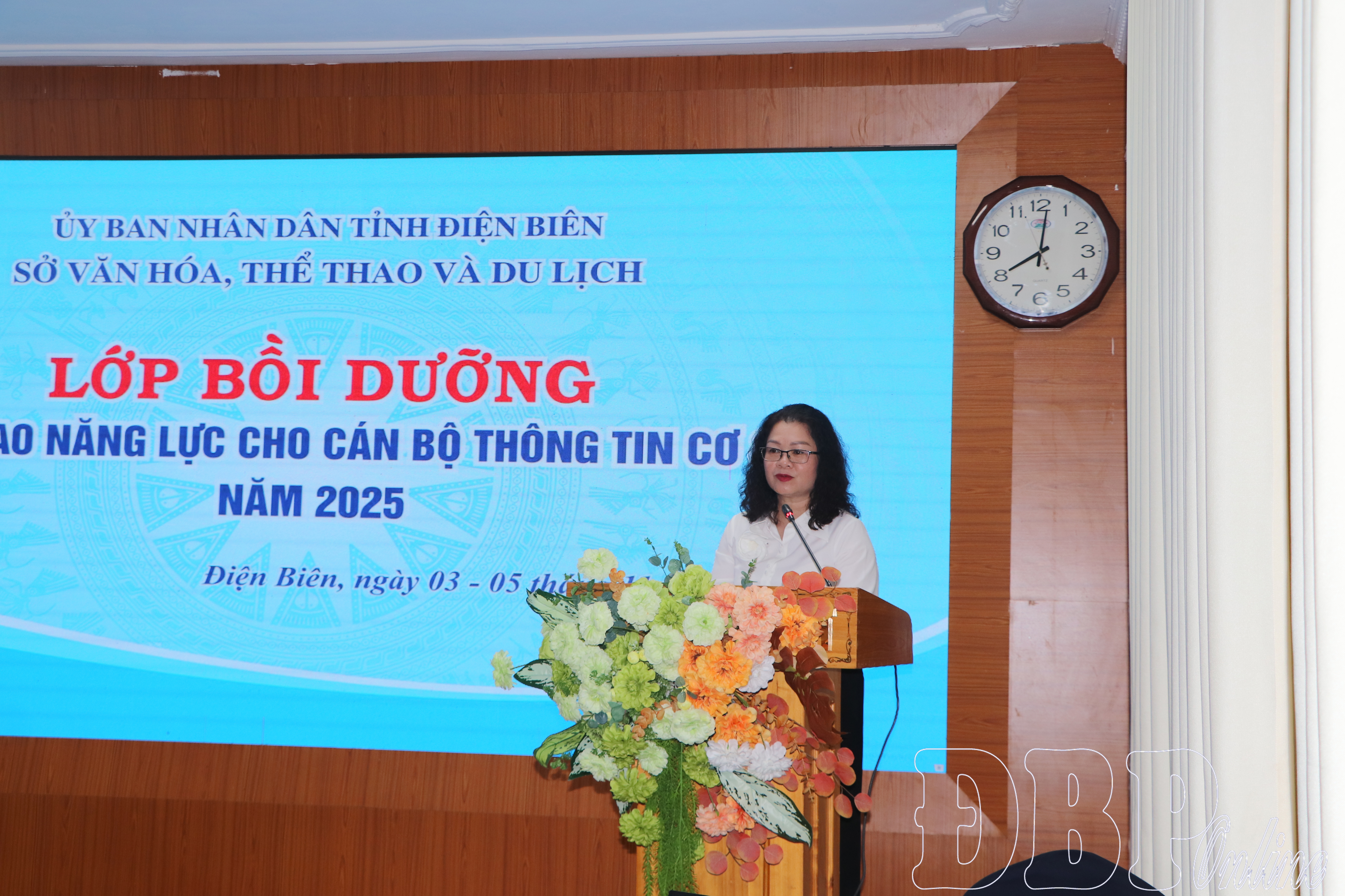 Phó Giám đốc Sở Văn hóa, Thể thao và Du lịch Nguyễn Thị Thanh Chuyên khai mạc lớp bồi dưỡng.