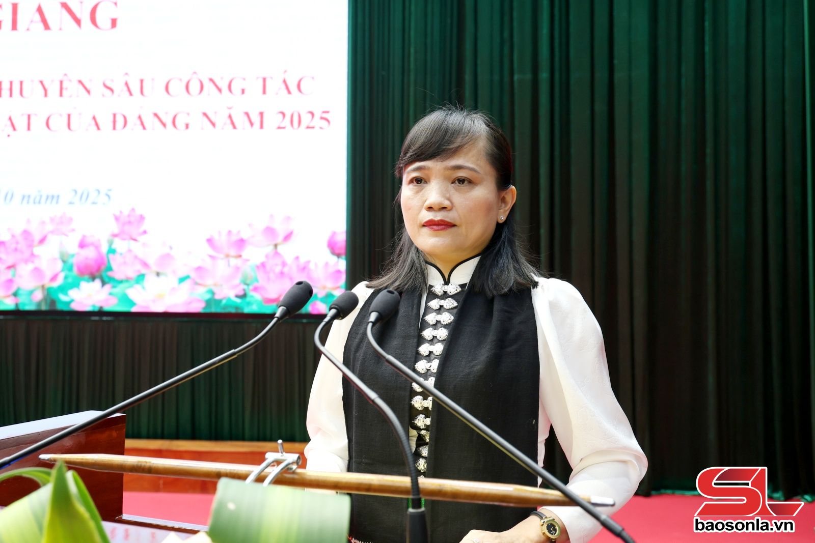 Đồng chí Lường Thị Vân Anh, Chủ nhiệm Ủy ban Kiểm tra Tỉnh ủy phát biểu tại lễ khai giảng.