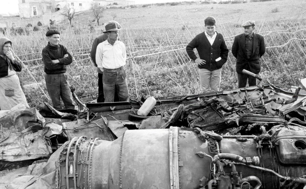 Hiện trường vụ máy bay B-52G chở bom hạt nhân của Mỹ rơi ở Palomares, Tây Ban Nha vào tháng 1/1966. Ảnh: New York Times