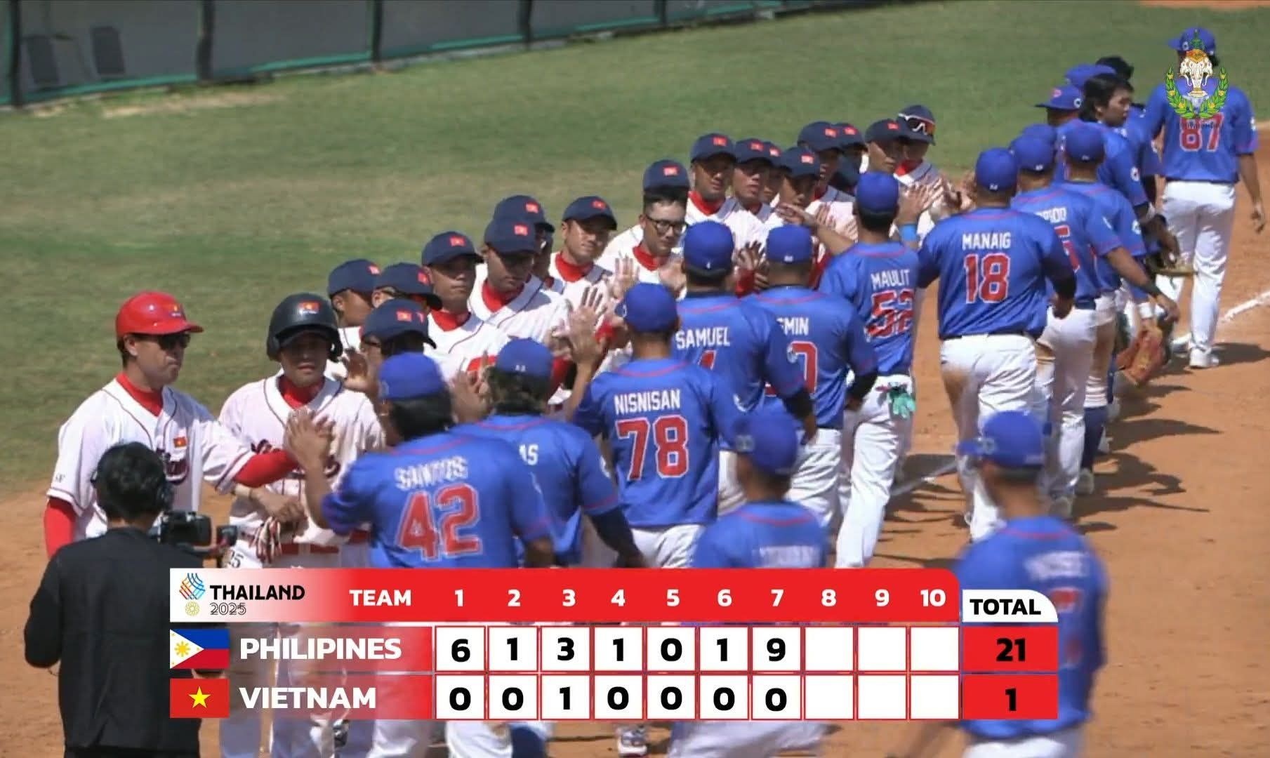 Bóng chày Philippines mạnh nhất khu vực khi vô địch SEA Games gần nhất (2019). Dễ hiểu đối thủ nhanh chóng áp đảo từ đầu. Đặc biệt, hiệp 7 chứng kiến sự bùng nổ khi đội bóng này ghi tới 9 điểm. Trong khi đó, Việt Nam chỉ có được duy nhất 1 điểm ở hiệp 2, còn lại hoàn toàn lép vế trong cả khâu tấn công lẫn phòng ngự.
