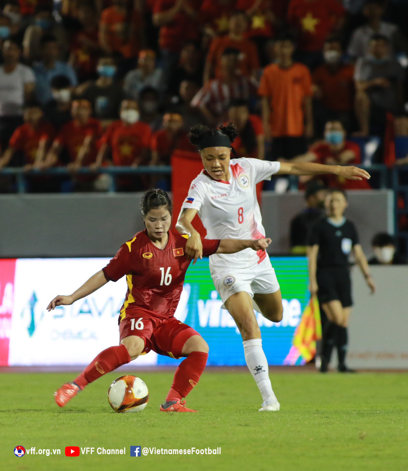 Cuộc so tài giữa hai đội tuyển nữ Việt Nam và Philippines ở bán kết AFF Cup 2022. Ảnh: VFF