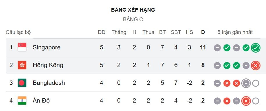 Đây là một hành trình đầy cam go đối với Singapore. Từ trận hòa đáng tiếc trên sân nhà trước Hong Kong, thắng nhọc nhằn 2-1 trước Bangladesh tại Dhaka, đến việc bị Ấn Độ gỡ hòa vào những phút cuối trên sân nhà khiến hy vọng tưởng chừng như mong manh.